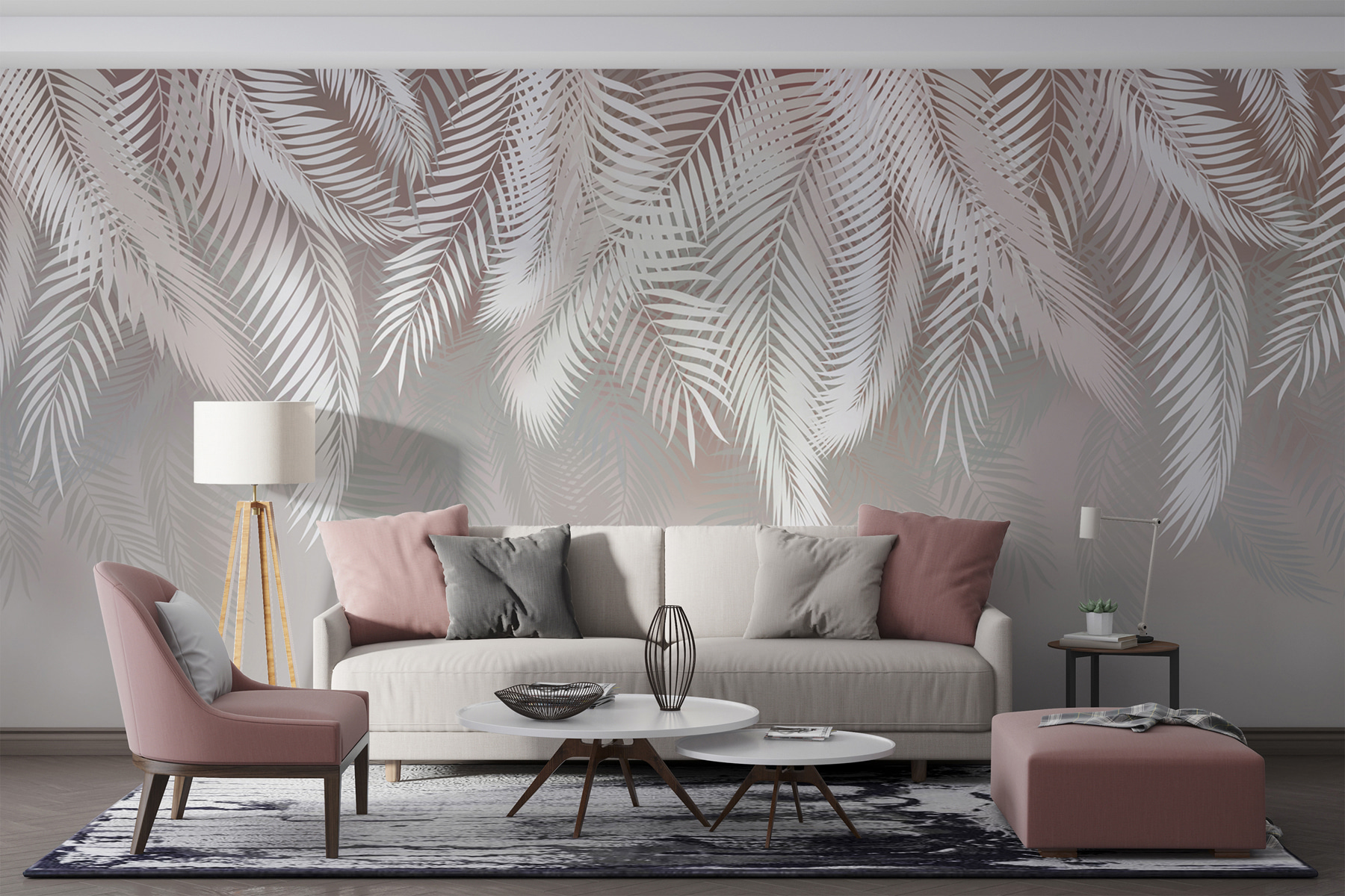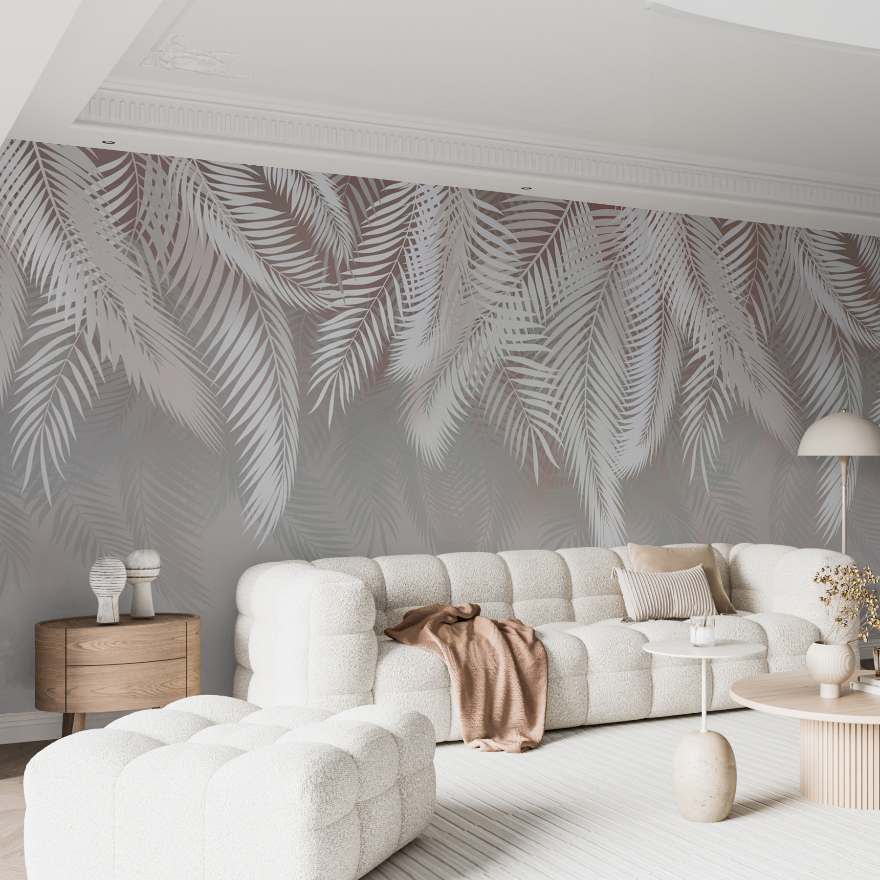 Wil je een kamer opfleuren zonder veel gedoe? Kijk dan eens naar deze witte palmbladeren op een beige achtergrond – het is net alsof je een vleugje tropen in huis haalt! Deze muurschildering voelt super rustgevend aan, net als het zachte gezwaai van palmbladeren in een zacht briesje. Stel je voor dat je na een lange dag thuiskomt; met dit op je muur zou je bijna verwachten dat je de oceaan op de achtergrond hoort.