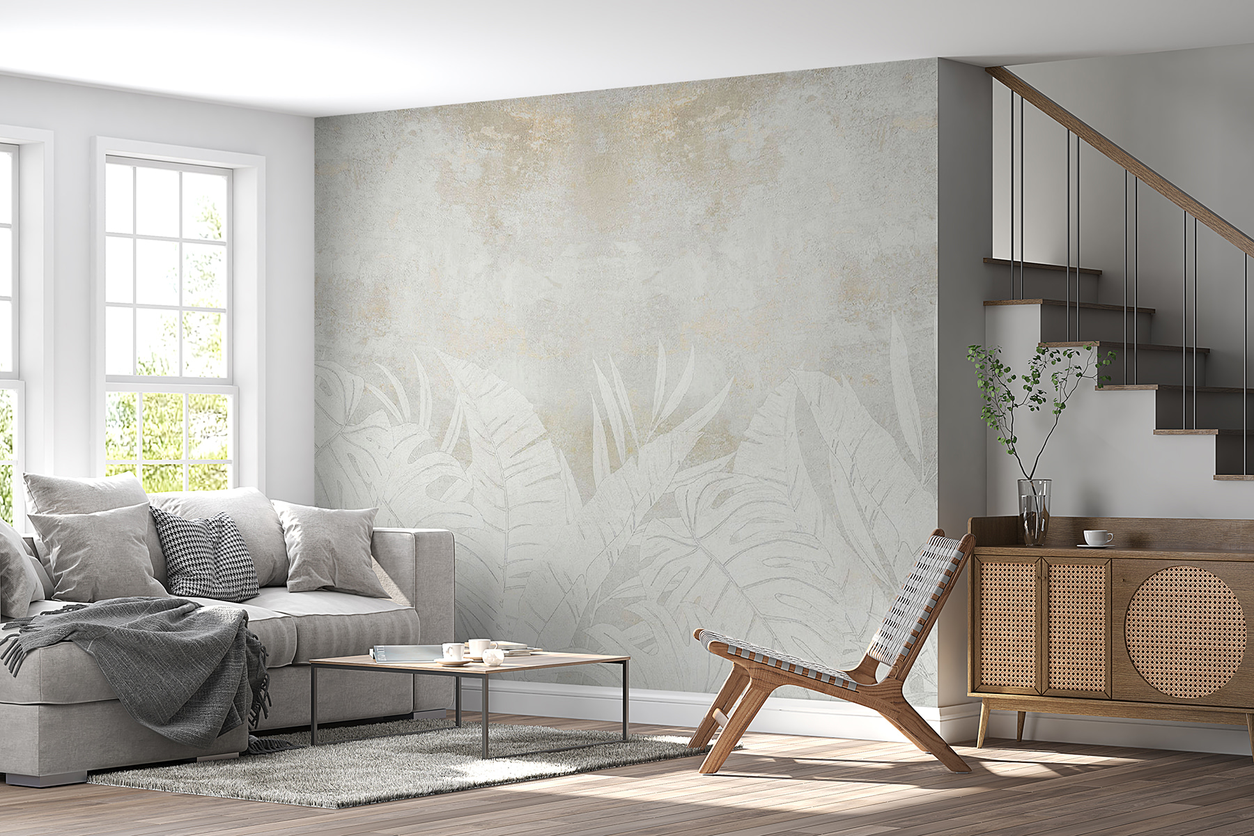 Verander je ruimte in een serene oase met deze muurschildering met tropische bladeren tegen een zachte, gedempte achtergrond. Stel je voor dat je vanuit je woonkamer een relaxte jungle binnenstapt. Het is de perfecte mix van natuur en stijl. De delicate bladmotieven lijken bijna te fluisteren over verre stranden en winderige dagen. Of het nu voor een gezellige leeshoek of een levendige eethoek is, deze muurschildering voegt een verfrissend tintje toe waardoor elke blik voelt als een mini-uitstapje. Vrienden zullen nieuwsgierig zijn of je je huis hebt omgetoverd tot een tropisch toevluchtsoord.