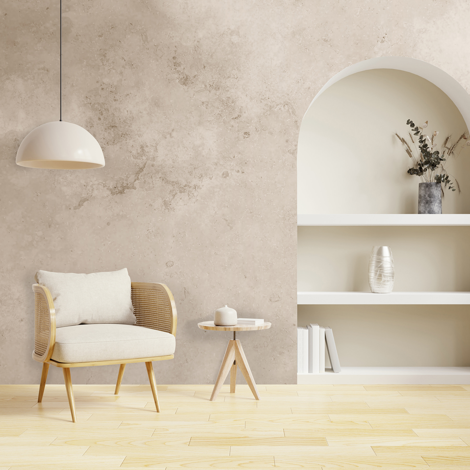 Stel je eens voor: Je nipt van je ochtendkoffie en de zachte, natuurlijke tinten van wit en bruin marmer begroeten je. Het is als een warme knuffel, maar dan voor je ogen. Direct stijlvol en gezellig. Serieus, vrienden zullen denken dat je een chique binnenhuisarchitect hebt ingehuurd. Of het nu voor je woonkamer, keuken of zelfs je thuiskantoor is – deze muurschildering brengt een gevoel van rust en tijdloze schoonheid. Wie wist dat beton zo stijlvol kon zijn?