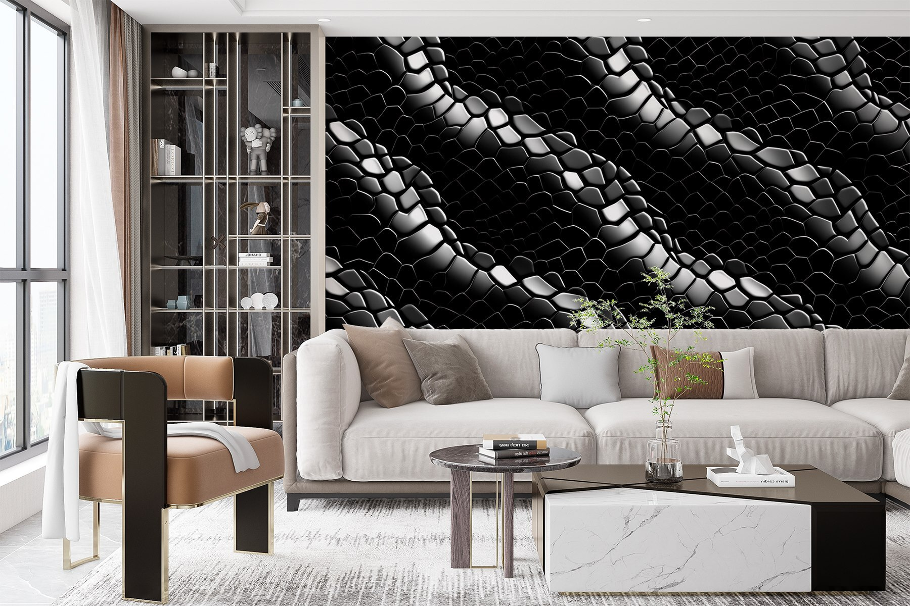 Transformeer elke ruimte met deze muurschildering met een ingewikkeld patroon dat over de muren danst. Stel je voor dat je een kamer binnenloopt en begroet wordt door dit opvallende ontwerp – onmiddellijk boeiend. Het heeft diepte, bijna alsof het je uitnodigt om met je vingers over de gladde oppervlakken te gaan. Stel je voor dat dit de achtergrond is voor gezellige praatjes met vrienden, of een opvallend statement dat alle blikken naar binnen trekt. Het is perfect voor die ene muur die wel wat extra liefde kan gebruiken en het alledaagse verandert in iets buitengewoons. Hang het op en kijk hoe elke gast een dubbele blik werpt – wie wil er nu geen muur die vreugde uitstraalt?