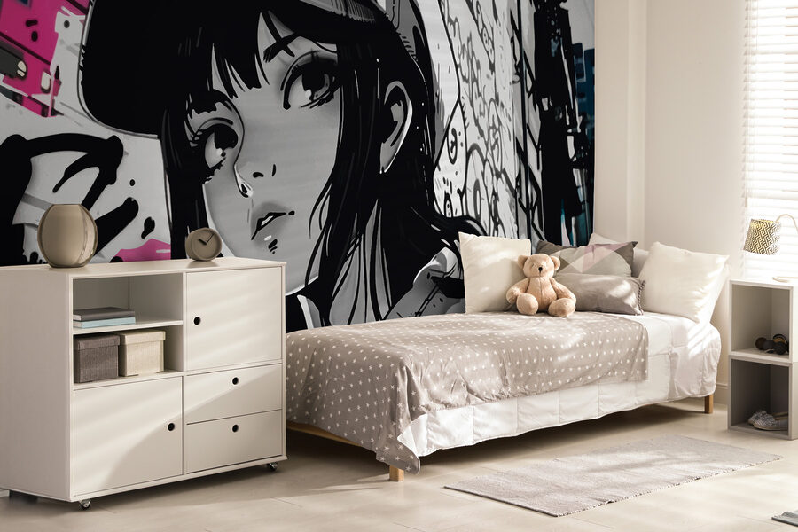 Geef elke kamer een vleugje artistieke flair met deze boeiende muurschildering van een chique vrouw met hoed. Stel je voor dat je een gezellig hoekje binnenstapt waar deze muurschildering gesprekken aanwakkert en creativiteit stimuleert. De contrasterende kleuren en gedurfde lijnen geven er een moderne draai aan, waardoor het perfect is voor elke jongerenruimte. Het is net alsof je een galerie met straatkunst in huis hebt! Of je nu koffie drinkt of een studiesessie plant, deze muurschildering voegt een sfeer toe die zowel inspirerend als moeiteloos cool is. Vrienden stoppen misschien wel om er een selfie of twee voor te nemen!
