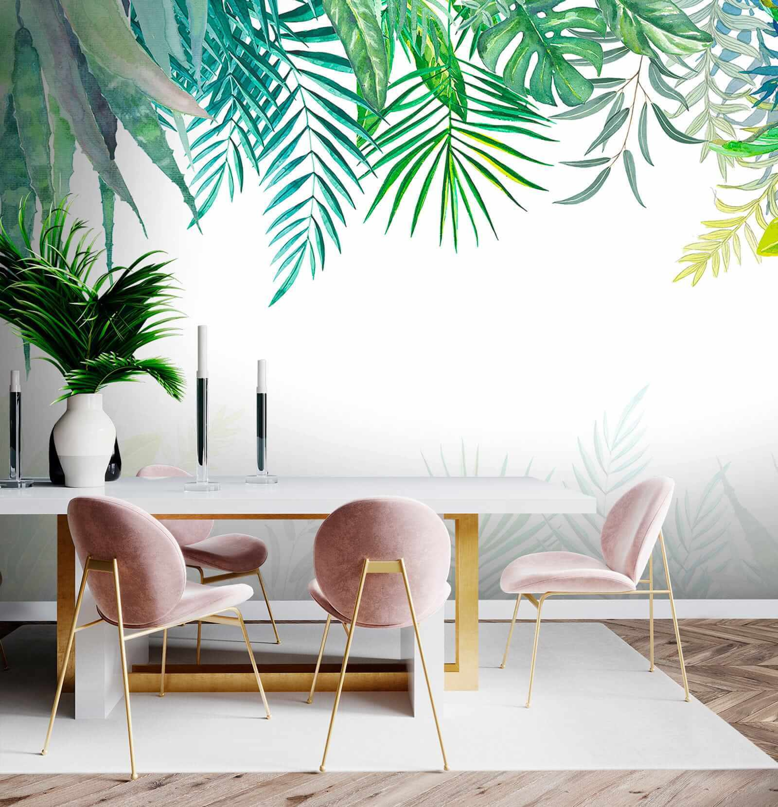 Fotobehang Groep bladeren op een witte achtergrond (SKU: u02715)