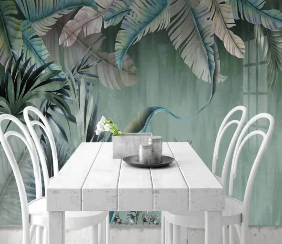 Transform your walls into a tropical retreat with the “Lush Leaves in Calming Tones” mural. Imagine stepping into a serene forest every time you enter the room—without the bugs! The blend of soothing greens and subtle blues creates a calming backdrop that feels like a gentle hug. Got a cozy reading nook? Perfect. Just picture curling up with a book, surrounded by these vibrant leaves, feeling miles away from stress. It’s like nature decided to pop into your living space, bringing fresh air and vibes. Ideal for anyone ready to escape into their little paradise!