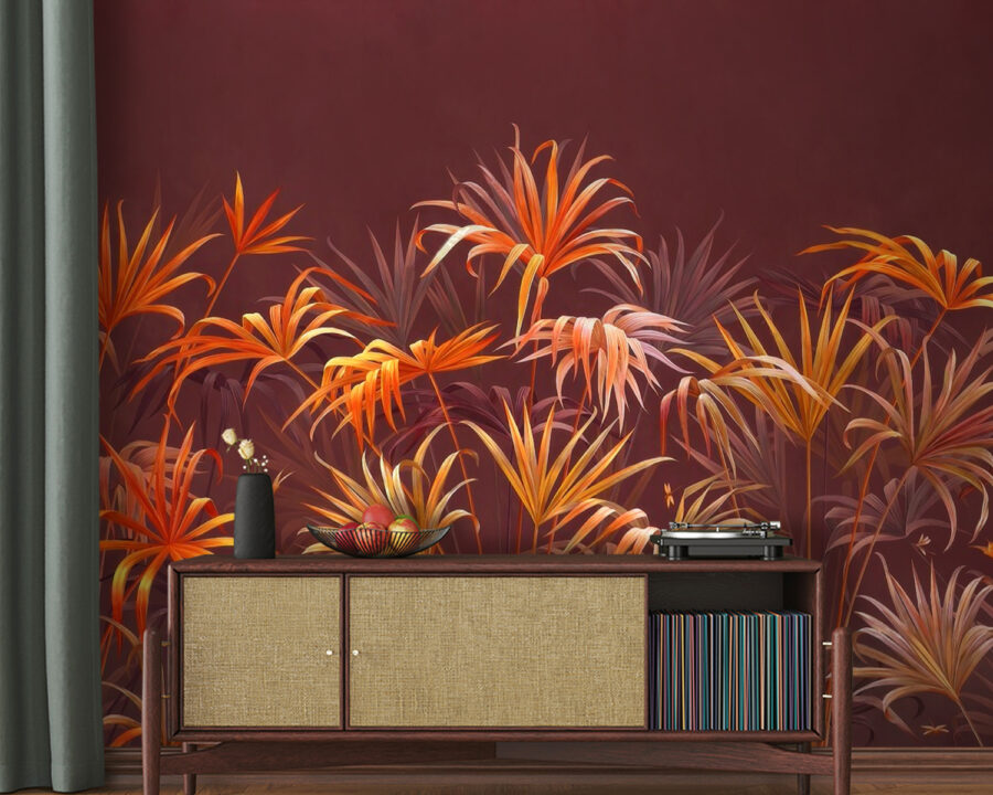Kijk eens naar deze coole muurschildering: “Levendig gebladerte tegen bruine achtergrond”. Het is net alsof je een tropische jungle binnenstapt zonder je huis te verlaten. De explosie van levendige bladeren springt eruit tegen de rijke, bruine achtergrond, waardoor het zowel gezellig als avontuurlijk is. Stel je voor dat je je woonkamer binnenloopt en het gevoel hebt dat je net een exotisch paradijs bent binnengestapt. Geweldige gespreksstarter, toch? Het is perfect voor iedereen die een vleugje natuur wil maar geen echte planten wil verzorgen. Dus als je je kamer wilt opleuken met iets wilds en moois, dan is deze muurschildering iets voor jou.