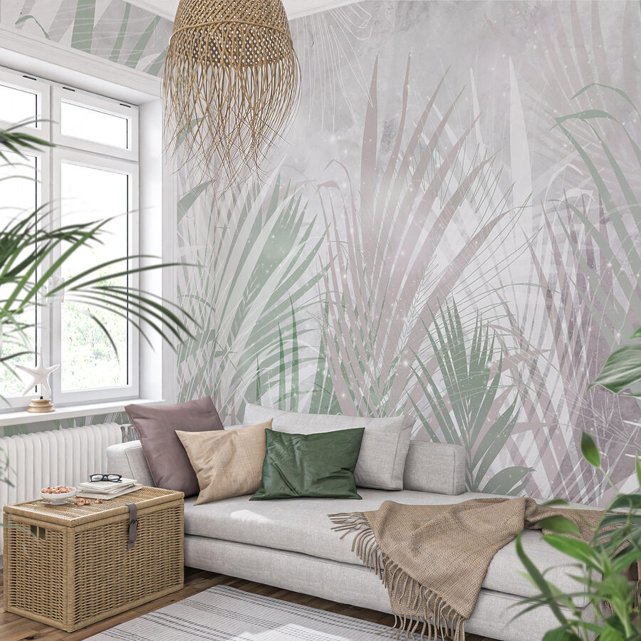 Hier is een muurschildering die even betoverend als chic is – een tropische oase op je muur. Stel je dit eens voor: Een speelse kat, ogen wijd open van nieuwsgierigheid, staart naar iets dat net buiten het zicht ligt, omringd door sierlijk gedetailleerde palmbladeren. Het gedempte groen en de zachte grijstinten voegen een vleugje sereniteit toe, perfect om elke ruimte om te toveren in een ontspannen schuilplaats. Het is alsof je de rust van de jungle naar je woonkamer brengt, maar dan zonder de vochtigheid! Ideaal voor iedereen die een beetje exotische charme in zijn interieur wil brengen. Plus, het is een gespreksstarter – gasten zullen zeker vragen, “Waar kijkt dat poesje naar?”. Of je nu lekker wegkruipt met een goed boek of een bijeenkomst organiseert, deze muurschildering vormt de perfecte achtergrond en ontsnapt aan de alledaagse drukte.