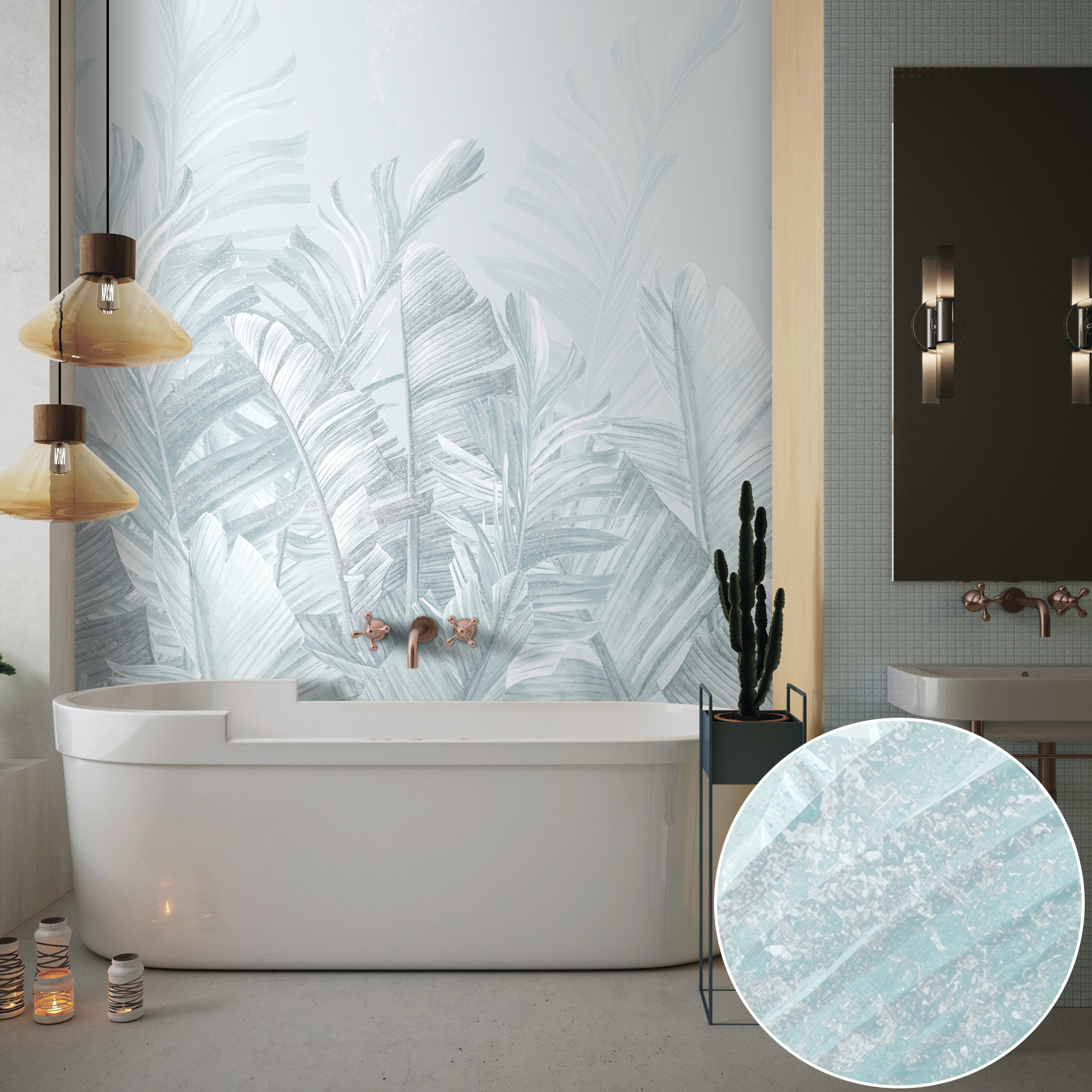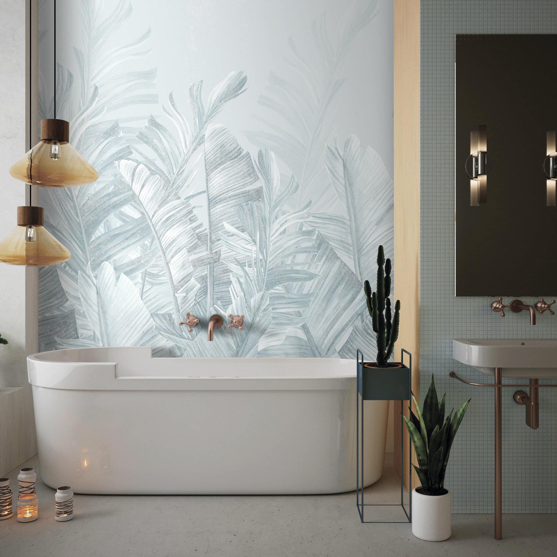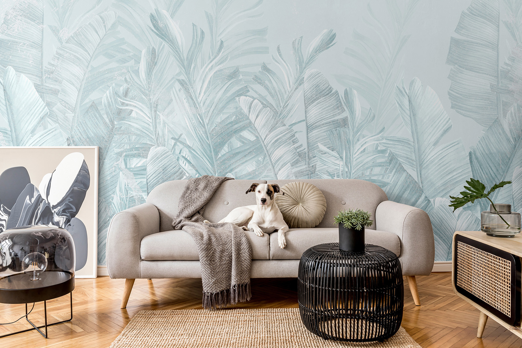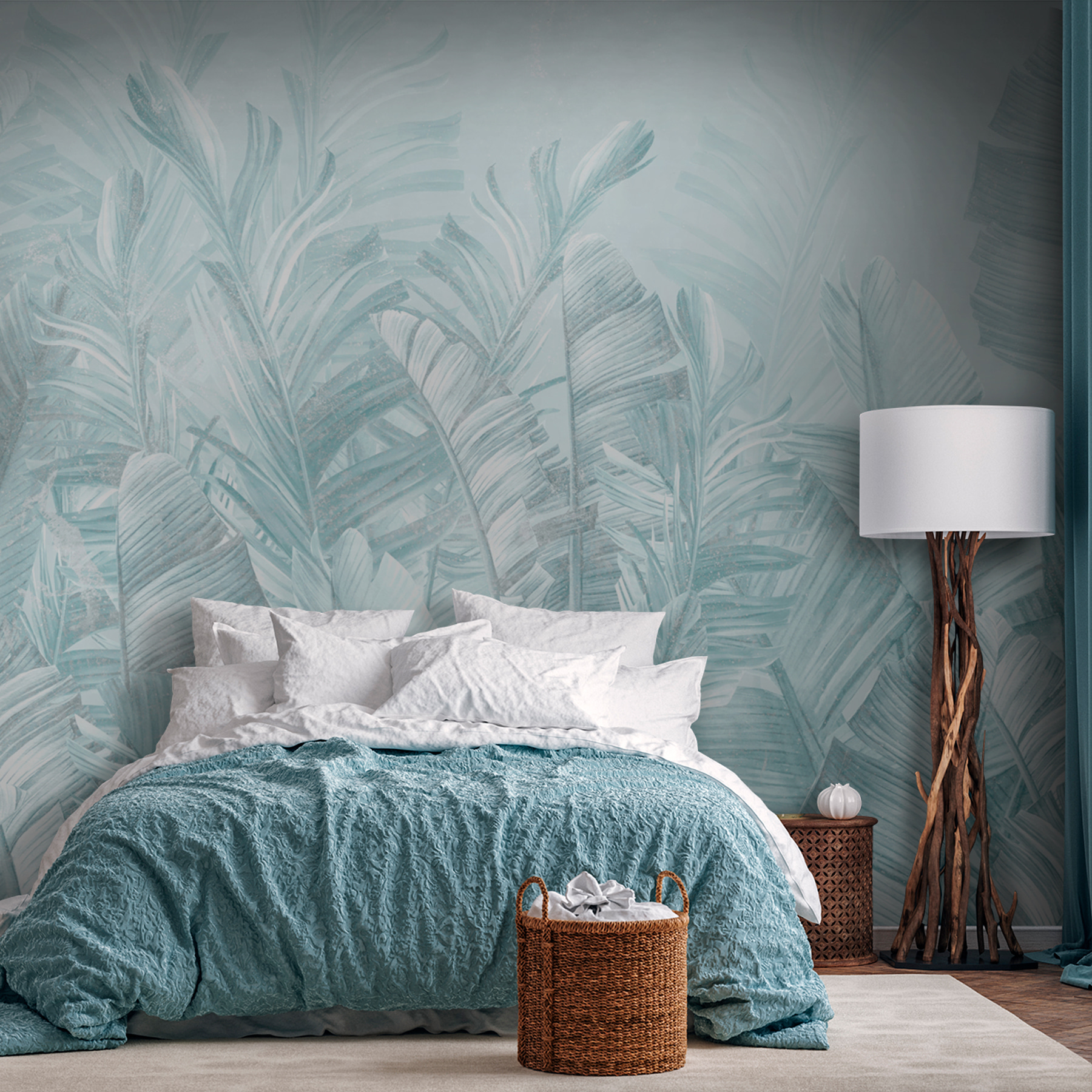 Transformeer je kamer met deze heerlijk zacht gekleurde muurschildering van tropische bladeren. Stel je voor dat je een kamer binnenloopt die aanvoelt als een luchtige ontsnapping naar een weelderig paradijs – zonder muggenbulten. Deze muurschildering brengt een serene, rustige sfeer, waardoor het perfect is om tot rust te komen na een lange dag. Stel je gezellige filmavonden of luchtige brunches voor, omringd door zacht groen en delicate texturen die bijna fluisteren, “Relax, je bent nu op een eiland”. Het is het soort achtergrond dat elk moment speciaal laat voelen, en laten we eerlijk zijn, wie heeft daar geen behoefte aan? Dus waarom zou je niet een vleugje tropische rust aan je muren toevoegen?