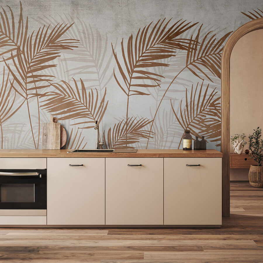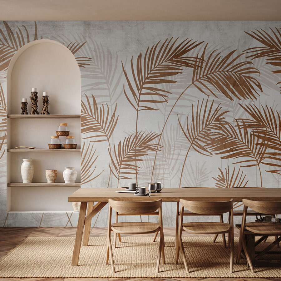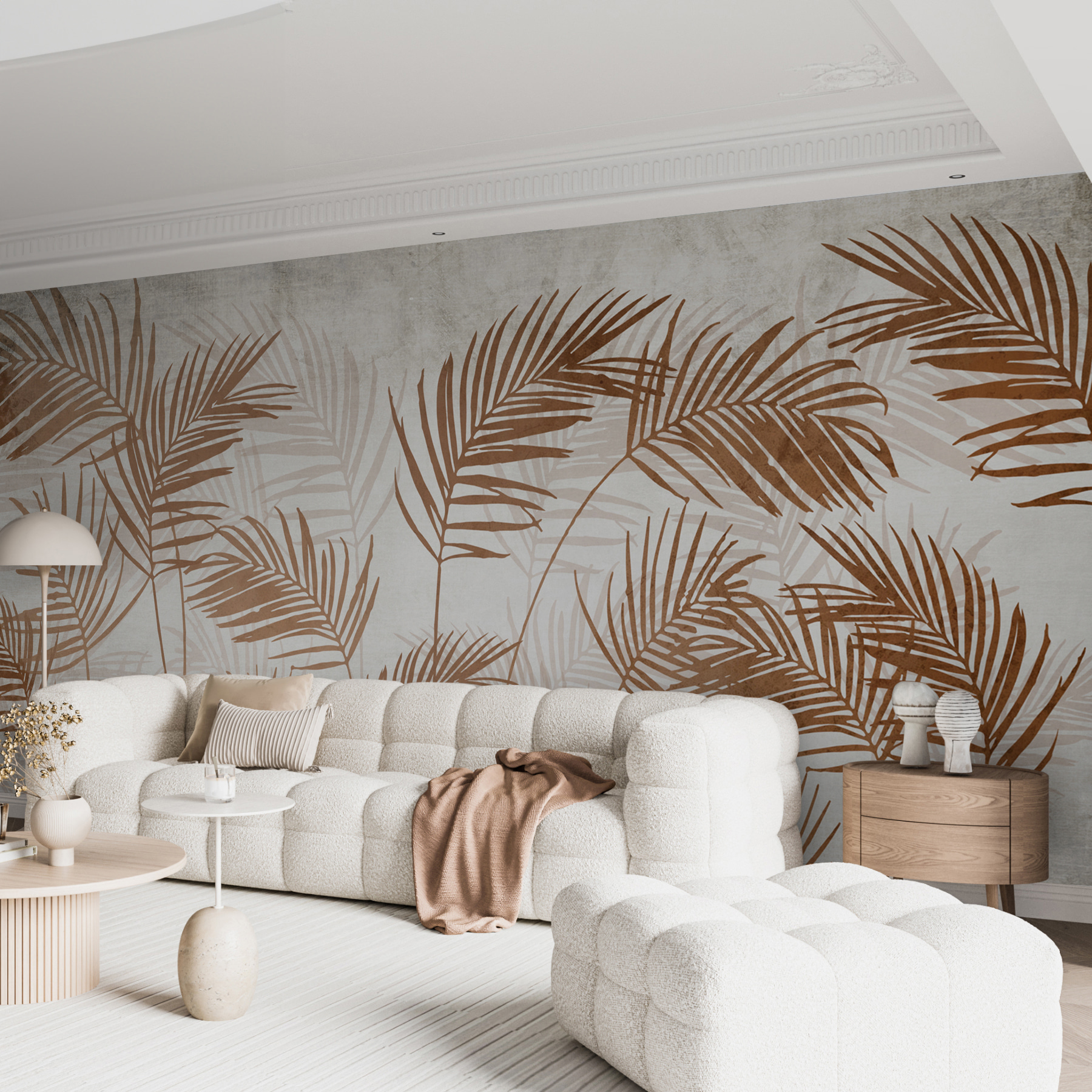 Als je muren hunkeren naar een vleugje natuur, is deze muurschildering “Muurschilderingen Bruine bladeren op een witte achtergrond” misschien precies wat ze nodig hebben. Stel je eens voor: mooie, bruine palmbladeren die zachtjes wiegen op een frisse, witte achtergrond. Het is alsof je een stukje van de tropen in huis haalt zonder dat je constant water hoeft te geven of af en toe spinnen tegenkomt.