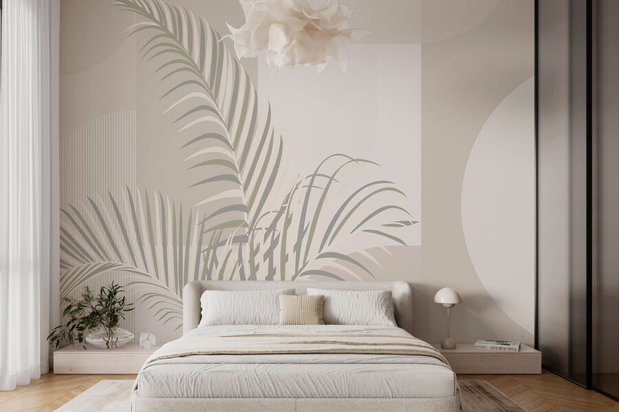 Geweldig voor elke ruimte die een oppepper nodig heeft – woonkamer, slaapkamer of zelfs kantoor. Die opvallende palmbladeren tegen een moderne, minimalistische achtergrond zijn niet alleen trendy maar ook rustgevend. Kun je je voorstellen dat je vrienden uitnodigt voor een etentje en dat ze met hun mond vol tanden staan? “Waar heb je die geweldige muurschildering vandaan?” zullen ze vragen. Ja, het is zo’n show-stopper.