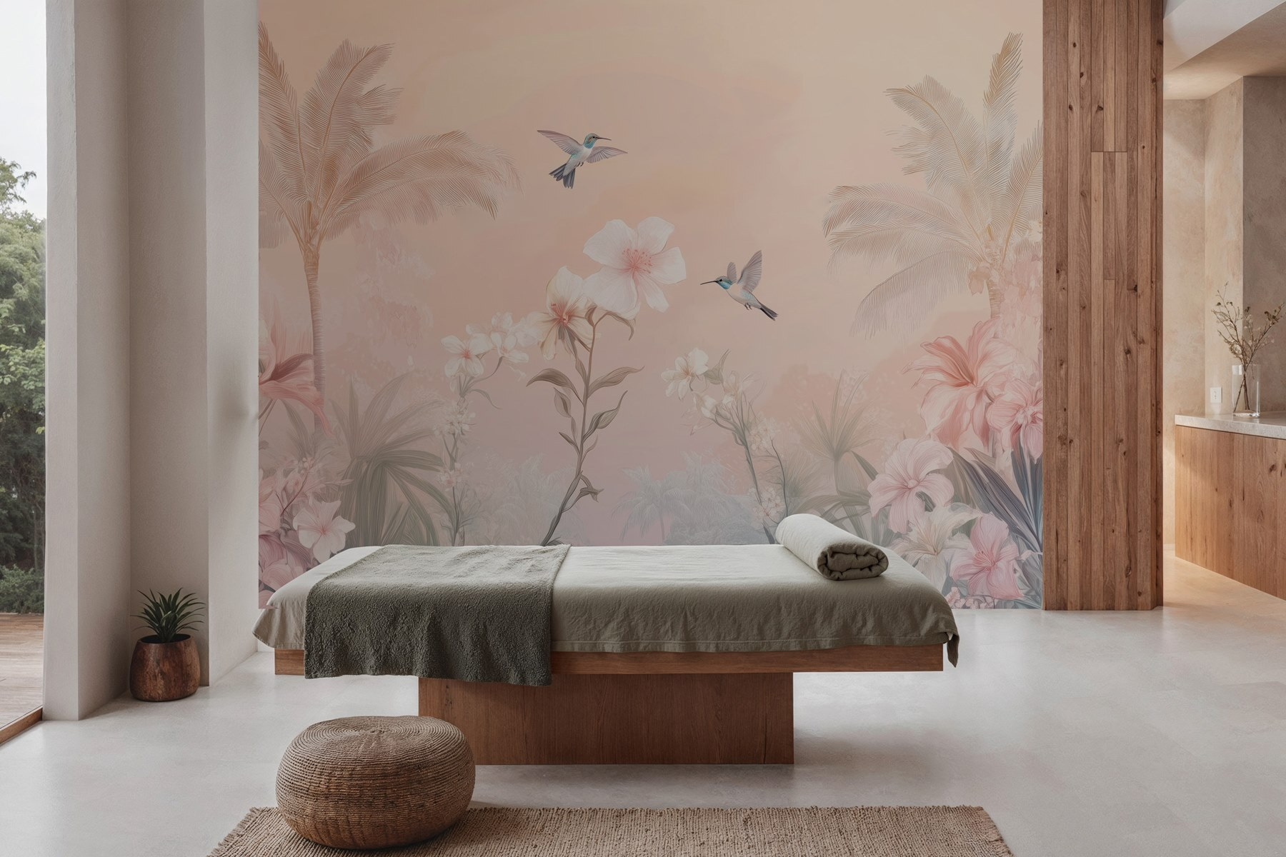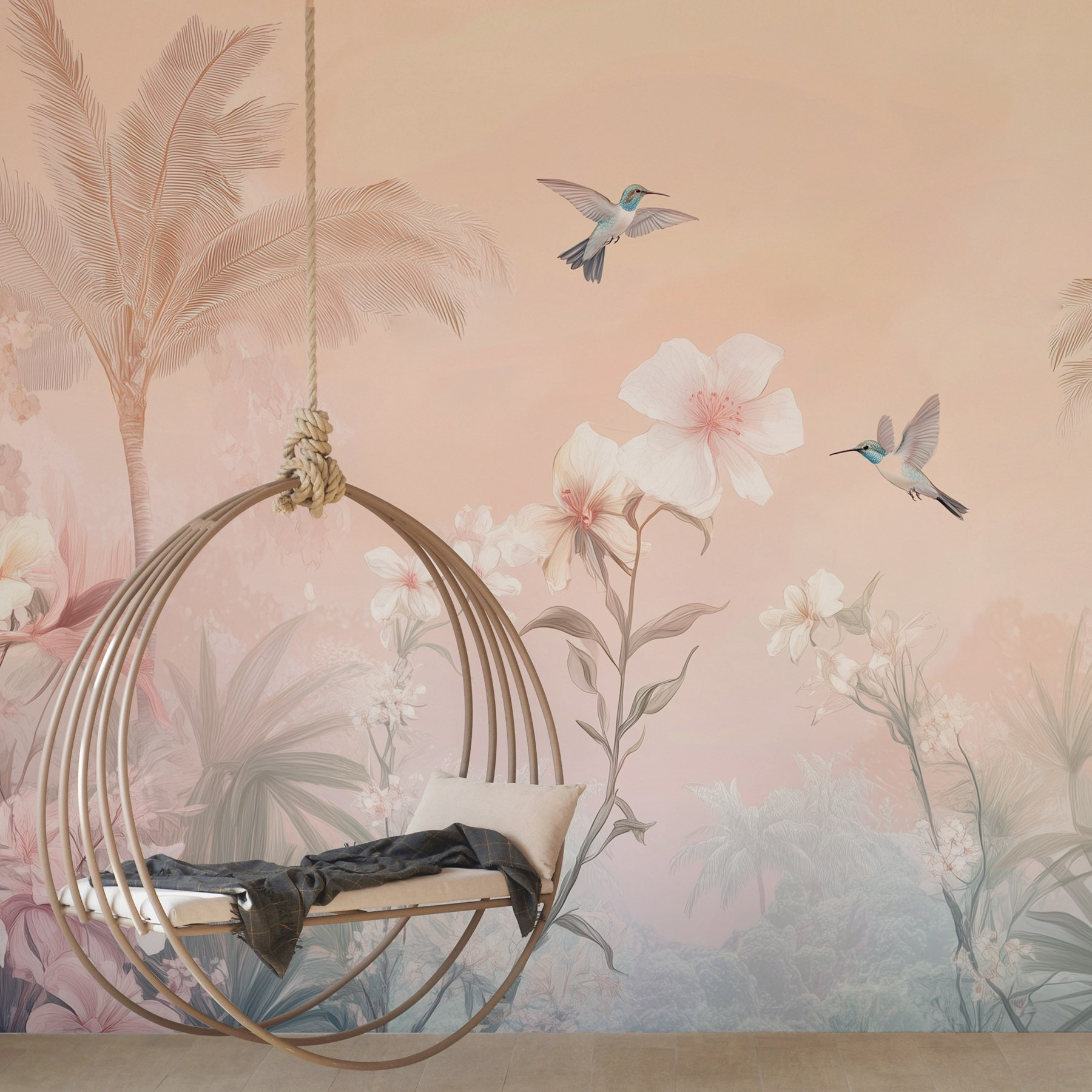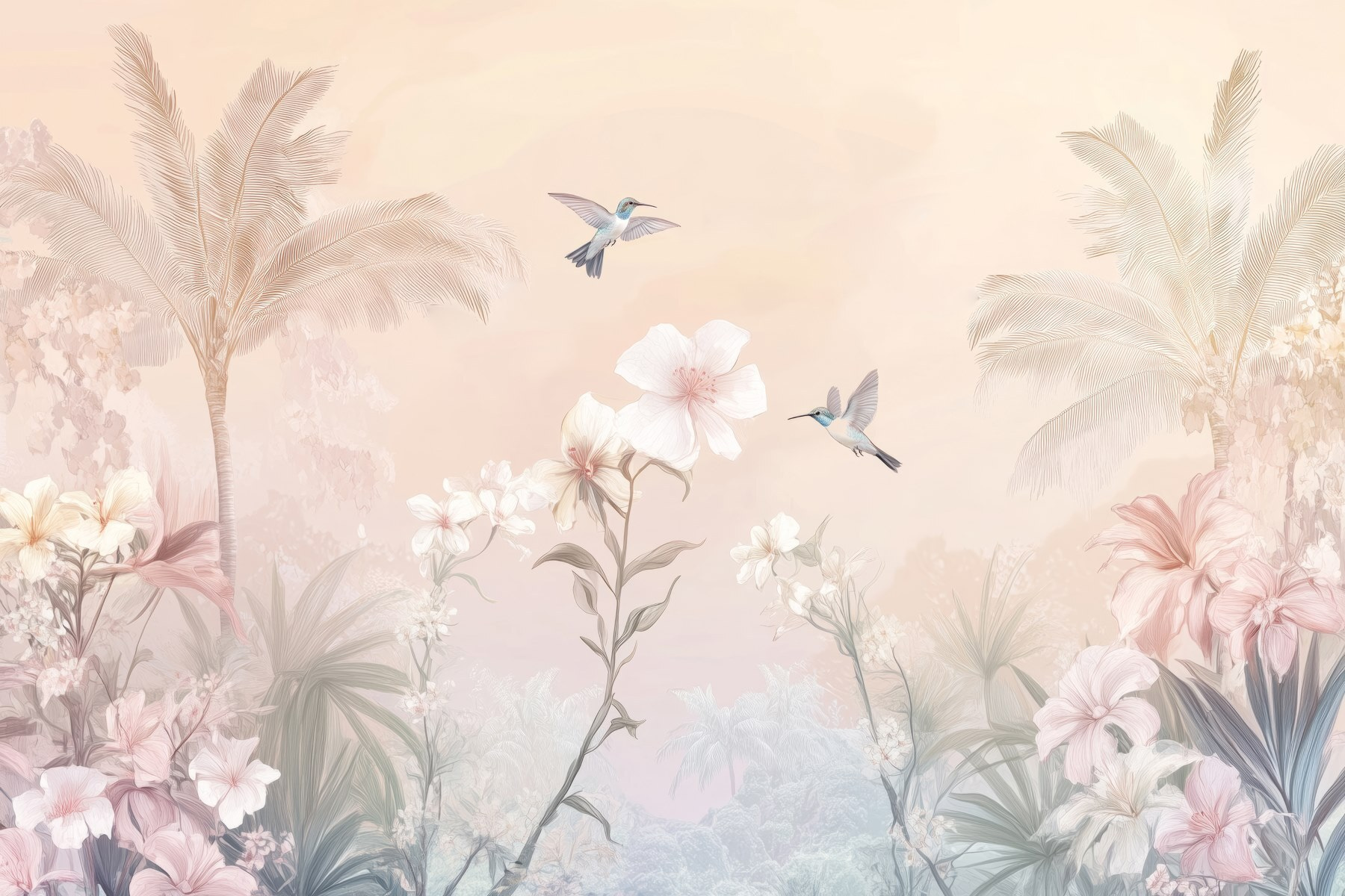 Transformeer uw ruimte met deze betoverende muurschildering, “Group of Birds Flying Over Flowers” (Groep vogels die over bloemen vliegen). Stelt u zich eens voor: levendige vogels die boven weelderige bloemen fladderen en een vleugje natuur in uw huis brengen. Dit is niet zomaar een wanddecoratie; het is een dagelijkse herinnering aan de schoonheid buiten uw vier muren. Stel je voor dat je koffie drinkt en wegdroomt terwijl je naar dit tropische wonder kijkt. De zachte kleuren creëren een uitnodigende sfeer, waardoor het een perfecte achtergrond is voor gezellige bijeenkomsten of rustige momenten alleen. Het is als een stukje paradijs, maar dan zonder het zand! De bloemen fluisteren verhalen over warme briesjes, en die vogels? Die inspireren misschien wel tot een spontaan dansfeestje. Duik in dit bloemenparadijs!