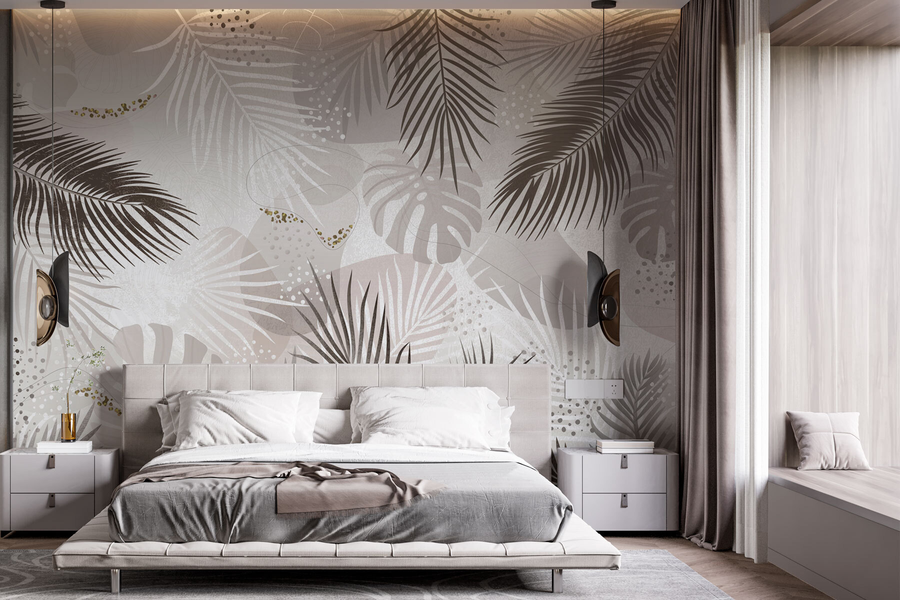 Tover je kamer om in een tropische oase met deze muurschildering met elegant gebladerte in neutrale tinten. Stel je voor dat je een serene ontsnapping binnenstapt telkens als je de kamer binnenkomt – waar zachte groentinten en aardetinten een rustgevende achtergrond creëren. Dit ontwerp ziet er niet alleen mooi uit; het roept gevoelens op van de rust van de natuur en fluistert verhalen op van zonovergoten jungles en winderige middagen. Stel je voor dat je vrienden ontvangt, met een drankje in de hand, terwijl ze het weelderige landschap bewonderen en misschien zelfs verdwalen in een gesprek over de laatste keer dat ze op vakantie waren in het paradijs. Deze muurschildering brengt een frisse wind in elke ruimte, waardoor deze levendig en moeiteloos chic aanvoelt.