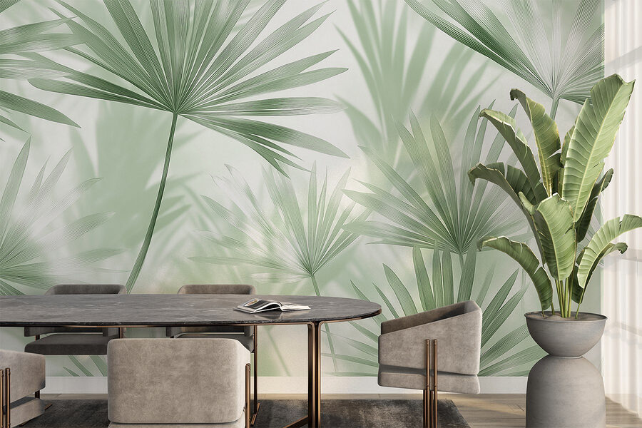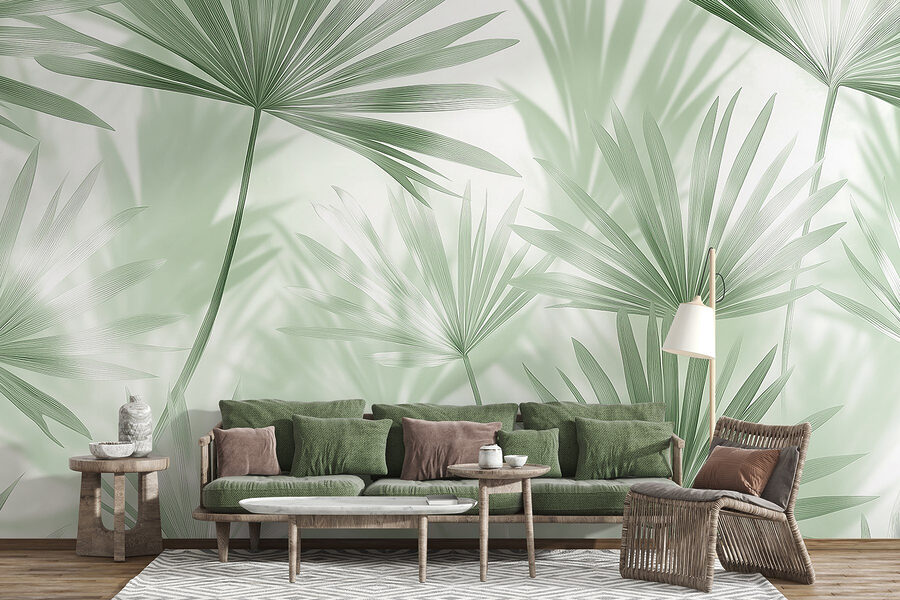 Verander elke ruimte in een serene oase met deze dromerige muurschildering, “Soft Earth Tones and Delicate Foliage”. Stel je voor dat je elke dag wordt omhuld door rustgevende groentinten en zachte texturen – perfect voor die momenten waarop je even wilt ontsnappen, of misschien zelfs inspiratie nodig hebt voor je volgende doe-het-zelfproject. De delicate palmbladeren dansen samen, waardoor het lijkt alsof er een zacht briesje door je kamer waait, zonder de insecten die altijd hun weg naar binnen lijken te vinden. Het is ook prettig voor het oog: geen felle kleuren of chaotische ontwerpen hier. Alleen een warme omhelzing van de natuur die rust uitstraalt, waardoor het moeilijk is om niet te glimlachen terwijl je koffie drinkt of ontspant na een lange dag. Maak je klaar om van je muur een gespreksonderwerp te maken dat schoonheid combineert met een vleugje tropische rust!