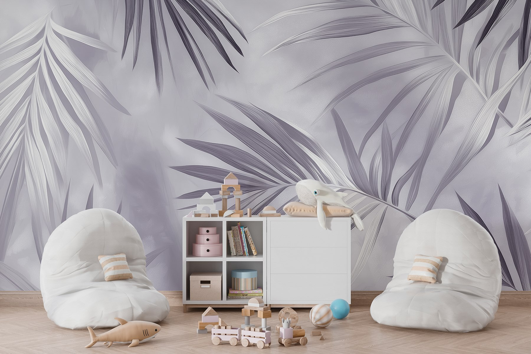 Transformeer je ruimte met deze prachtige muurschildering met tropische bladeren in zachte monochrome tinten. Stel je voor dat je een kamer binnenloopt die aanvoelt als een luchtige ontsnapping – precies wat je nodig hebt voor lange dagen thuiswerken of een gezellig weekendje weg. De subtiele tinten voegen een rustgevende sfeer toe, perfect om te ontspannen met een goed boek of nippend aan je favoriete thee. Stel je een vriend voor die langskomt en zijn of haar ogen laat oplichten als ze het weelderige groen aan de muren zien en moeiteloos een gesprek op gang brengt over warme zomeravonden en dromerige vakanties. Het is net een stukje paradijs zonder de vlucht! Deze muurschildering is ideaal voor elke kamer die een vleugje charme van de natuur nodig heeft en brengt zowel stijl als rust.