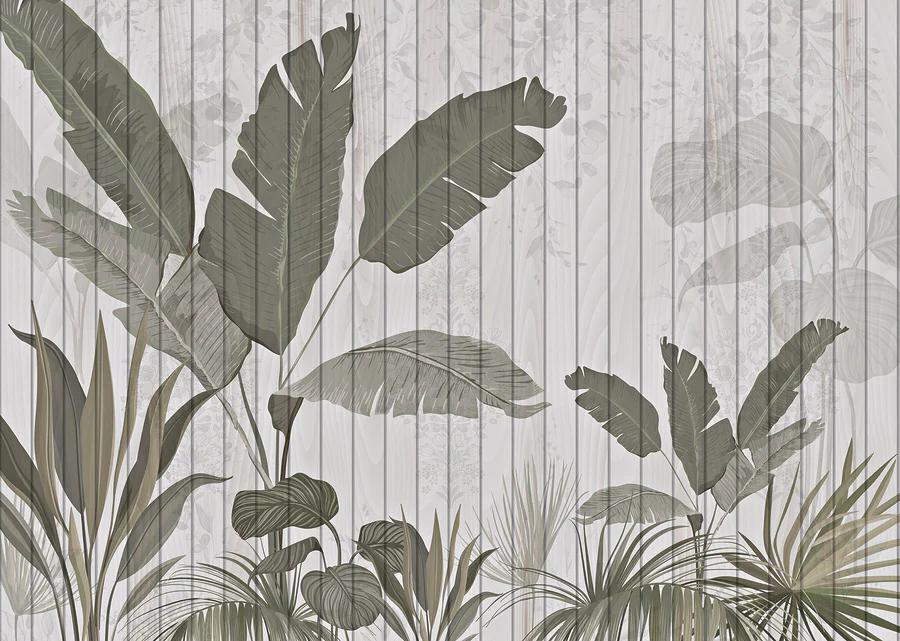 Verander een saaie muur in een tropische ontsnapping met deze muurschildering met weelderige bladeren en planten. Stel je voor dat je de ruimte binnenstapt en een warme bries voelt – oké, misschien niet letterlijk, maar de sfeer is er zeker. Het gedempte groen tegen een lichte achtergrond creëert een rustgevende oase, perfect voor elke kamer die hunkert naar een vleugje natuur. Vrienden zullen je ruimte misschien aanzien voor een chic junglecafé. Het is ontspannen maar toch stijlvol en heeft een magische manier om het buitenleven naar binnen te halen, waardoor elke dag voelt als een mini-uitstapje. Wie zou dat niet willen?