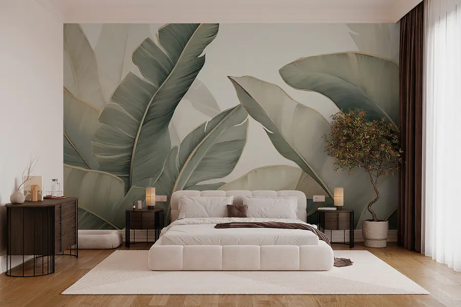 Verander je ruimte in een serene oase met de muurschildering “Soft Hues of Nature’s Touch”. Stel je dit eens voor: je loopt een kamer binnen en het voelt alsof er net een zacht briesje heeft gewaaid dat een vleugje van de tropen naar je muren brengt. De sierlijke palmbladeren dansen in gedempte tinten en creëren een gezellige sfeer die perfect is om ‘s ochtends aan je koffie te nippen of tot rust te komen met een goed boek. Het is alsof je een kunstwerk uit de natuur in je woonkamer ophangt, dat je eraan herinnert om kalmte te omarmen. Het is subtiel, maar impactvol – een dagelijkse dosis rust die het dagelijks leven een beetje specialer maakt. Breng een vleugje buiten naar binnen en zie hoe je kamer tot leven komt!