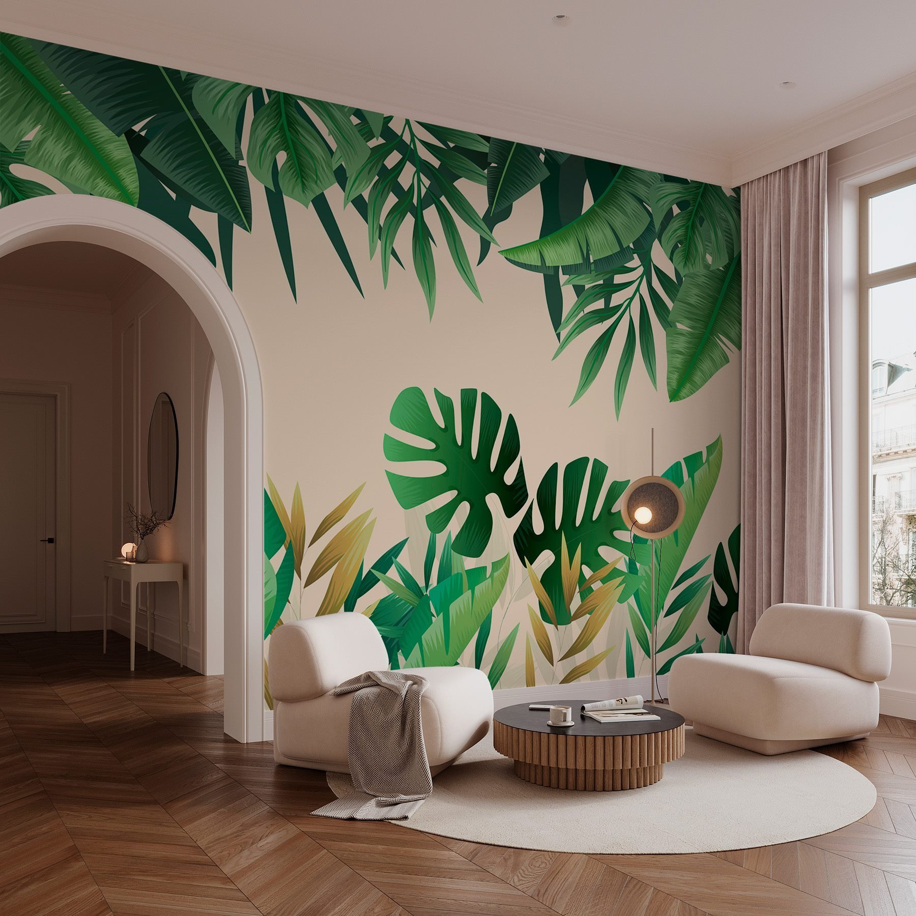 Verander elke kamer in een tropische ontsnapping met deze levendige muurschildering van groene bladeren. Stel je voor dat je binnenkomt en het gevoel hebt dat je een weelderig regenwoud bent binnengestapt – de eigen luchtzuiverende magie van de natuur thuis. Het rijke groen en de speelse patronen zijn als een frisse wind, waardoor zelfs een kleine ruimte open en levendig aanvoelt. Perfect voor een gezellig leeshoekje of een funky keukenmuur, het is precies wat je nodig hebt om een gesprek op gang te brengen. Vrienden zullen zich afvragen of er een avontuur in de jungle om de hoek ligt. Wie heeft er vakantie nodig als je dit hebt?