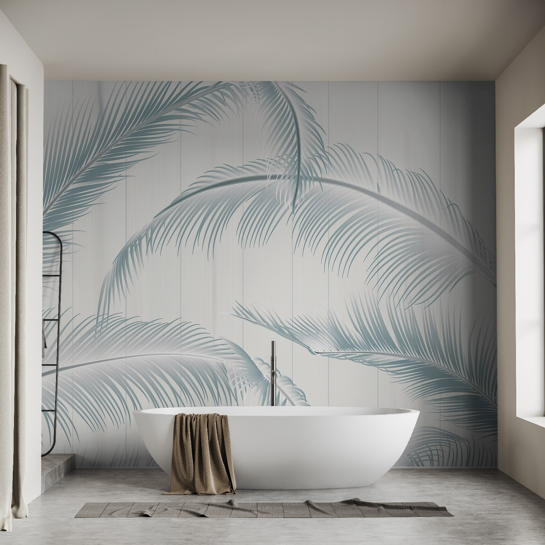 Verander je ruimte in een luchtig paradijs met de muurschildering “Delicate Fronds on a Light Background”. Stel je voor dat je wakker wordt en je koestert in zachte palmbladvibraties – wie zou zich niet een beetje meer ontspannen voelen? De zachte kleuren zorgen voor een frisse wind, waardoor elke kamer sereen en uitnodigend aanvoelt. Stel je voor dat je ‘s ochtends aan je koffie nipt, omringd door dit weelderige groen dat lijkt te wiegen in een zacht briesje. Het is alsof je thuis een tropisch mini-uitstapje hebt. Perfect om stress te verlichten of gewoon om te dagdromen over zandstranden. Fleur die muren op en laat je dagelijks inspireren door de schoonheid van de natuur!
