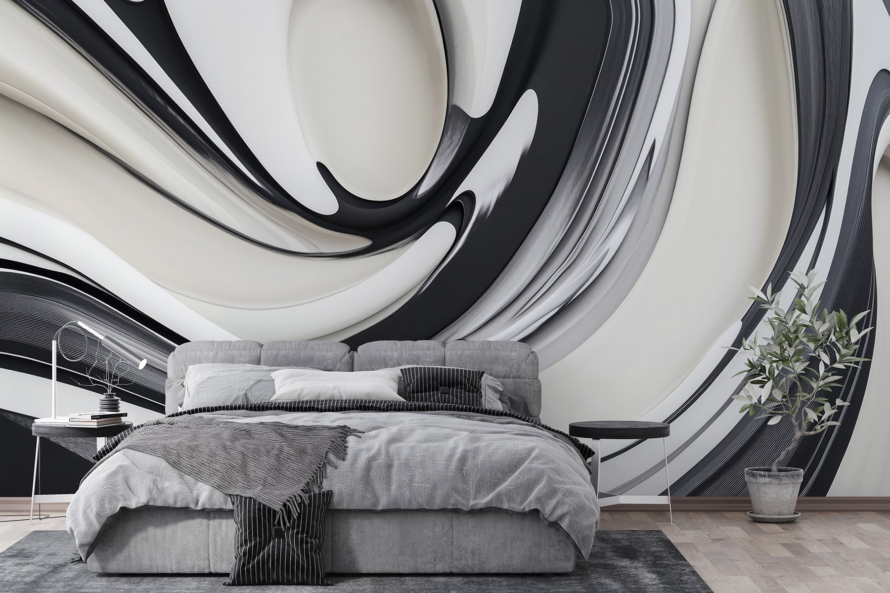 Transformeer je ruimte met de fascinerende muurschildering “Black and White Swirly Design”! Dit stuk geeft elke kamer een opener gevoel, bijna alsof je een stukje moderne kunst toevoegt aan je omgeving. Stel je voor dat je een kamer binnenloopt en je voelt die zachte werveling van elegantie om je heen – niets te luid, gewoon een leuk vleugje flair. Het monochrome palet past overal bij, waardoor het een fluitje van een cent is om je inrichting te mixen en matchen. Het is zo’n muurschildering die een gesprek op gang brengt, misschien zelfs dagdromen over abstracte kunstlessen. Deze muurschildering is perfect voor een woonkamer of zelfs een gezellig leeshoekje en fluistert verfijning in terwijl het zegt: “Ik heb stijl. Laat het leven blazen in je muren en zie je ruimte tot leven komen!