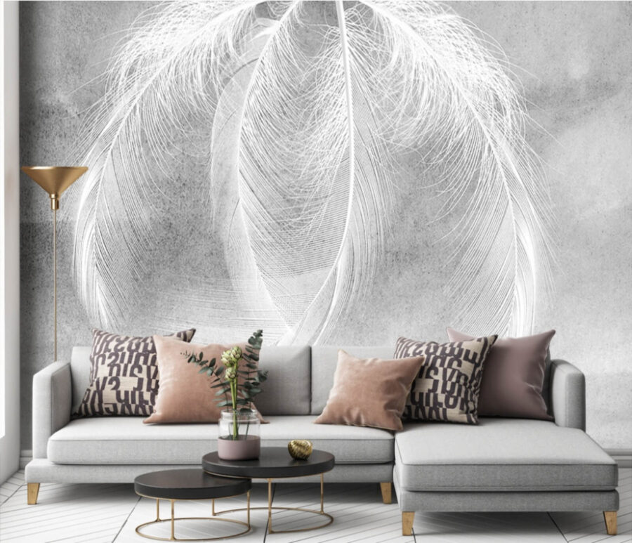 Maak kennis met een muurschildering die doet denken aan een frisse wind – zachte veren tegen een prachtig gedempte achtergrond. Het is als een uitnodiging om weg te zweven op een wolk van sereniteit telkens als je de kamer binnenloopt. Stel je gezellige avonden voor met een warm drankje, het zachte verenontwerp dat dagdromen en luchtige praatjes opwekt. Deze muurschildering schreeuwt niet om aandacht, maar fluistert zachtjes elegantie en rust, en creëert zo een perfecte plek om je terug te trekken. Ideaal voor wie een vleugje rust en eigenzinnigheid wil toevoegen, terwijl het toch moeiteloos stijlvol blijft. Perfect voor een slaapkamer, leeshoekje of waar dan ook waar je wel wat vederlichte charme kunt gebruiken. Wie zou er niet wakker willen worden met deze sereniteit?