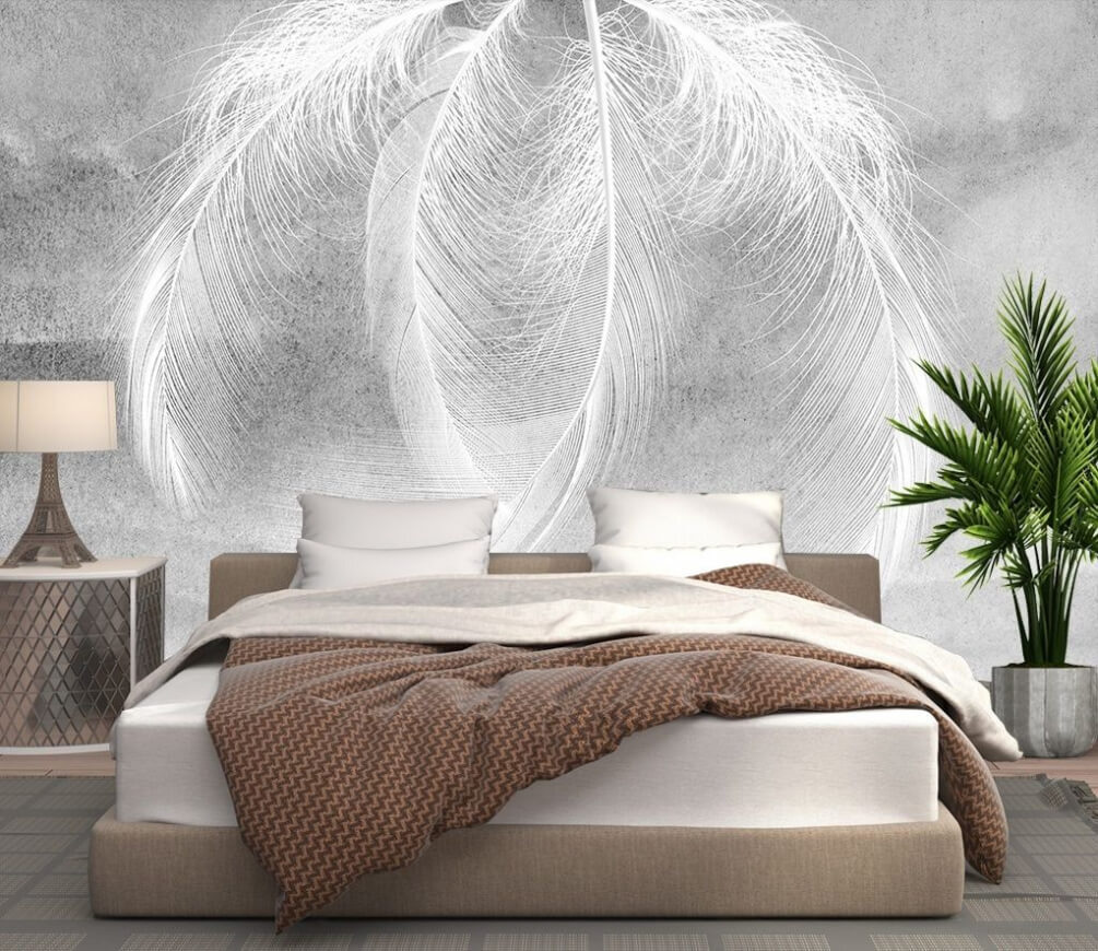 Maak kennis met een muurschildering die doet denken aan een frisse wind – zachte veren tegen een prachtig gedempte achtergrond. Het is als een uitnodiging om weg te zweven op een wolk van sereniteit telkens als je de kamer binnenloopt. Stel je gezellige avonden voor met een warm drankje, het zachte verenontwerp dat dagdromen en luchtige praatjes opwekt. Deze muurschildering schreeuwt niet om aandacht, maar fluistert zachtjes elegantie en rust, en creëert zo een perfecte plek om je terug te trekken. Ideaal voor wie een vleugje rust en eigenzinnigheid wil toevoegen, terwijl het toch moeiteloos stijlvol blijft. Perfect voor een slaapkamer, leeshoekje of waar dan ook waar je wel wat vederlichte charme kunt gebruiken. Wie zou er niet wakker willen worden met deze sereniteit?