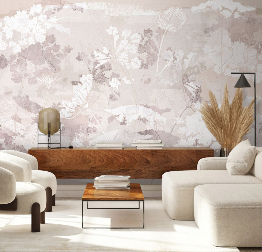 Verander elke ruimte in een serene oase met deze muurschildering met een delicaat wit en grijs bloemenpatroon. Stel je voor dat je een kamer binnenloopt die zo rustgevend aanvoelt als een fluisterend briesje, waar zachte bloemblaadjes op de muur lijken te dansen. Het is perfect voor die knusse hoekjes waar je ‘s ochtends aan je koffie nipt of lekker wegkruipt met een goed boek. De zachte tinten passen prachtig bij elkaar, waardoor ze gemakkelijk te combineren zijn met elke interieurstijl. Of het nu een chique woonkamer is of een rustige slaapkamer, deze muurschildering hult je muren in ingetogen elegantie en creëert een decor dat fris en uitnodigend aanvoelt.