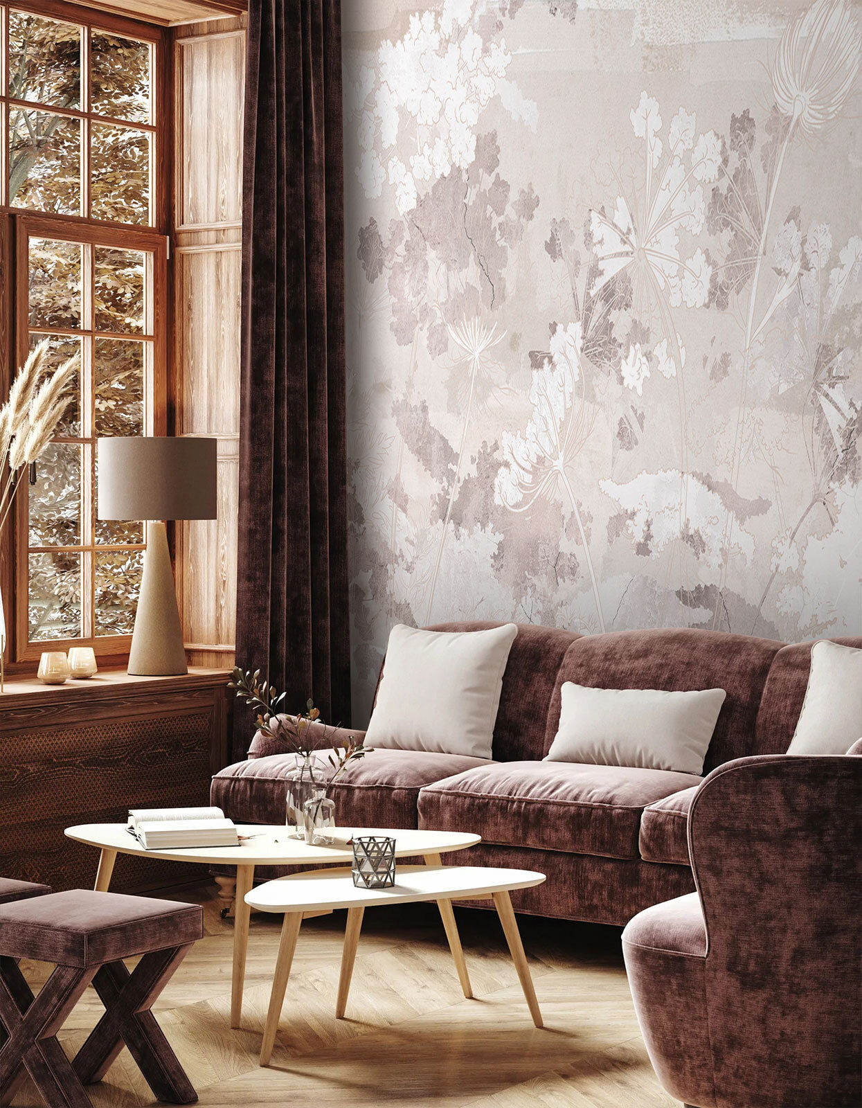 Verander elke ruimte in een serene oase met deze muurschildering met een delicaat wit en grijs bloemenpatroon. Stel je voor dat je een kamer binnenloopt die zo rustgevend aanvoelt als een fluisterend briesje, waar zachte bloemblaadjes op de muur lijken te dansen. Het is perfect voor die knusse hoekjes waar je ‘s ochtends aan je koffie nipt of lekker wegkruipt met een goed boek. De zachte tinten passen prachtig bij elkaar, waardoor ze gemakkelijk te combineren zijn met elke interieurstijl. Of het nu een chique woonkamer is of een rustige slaapkamer, deze muurschildering hult je muren in ingetogen elegantie en creëert een decor dat fris en uitnodigend aanvoelt.