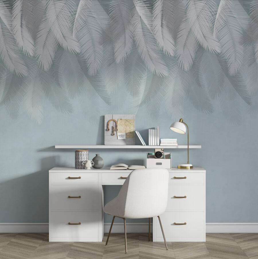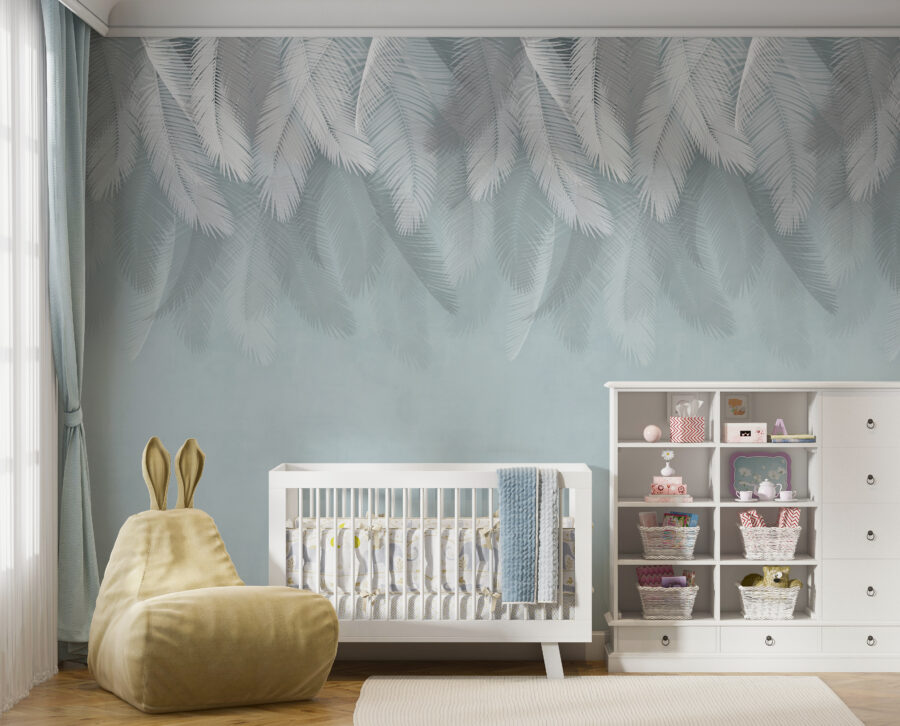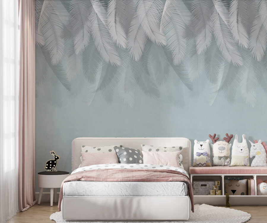 Stel je voor dat je een gezellige kamer binnenstapt en wordt begroet door zachte witte veren die tegen een zachte blauwe achtergrond zweven. Deze muurschildering is niet alleen een decoratie, het is een stukje rust dat je ruimte in een kalme sfeer hult. Perfect voor een slaapkamer of leeshoek, het voelt als een zacht briesje op een warme dag. Het speelse ontwerp fluistert over dagdromen en avonturen, misschien zelfs een ballonvaart door wolken van suikerspin. Het is het soort kunst dat je uitnodigt om even te blijven hangen, diep adem te halen en even aan de drukte te ontsnappen. Laat elke blik een glimlach op je gezicht toveren!