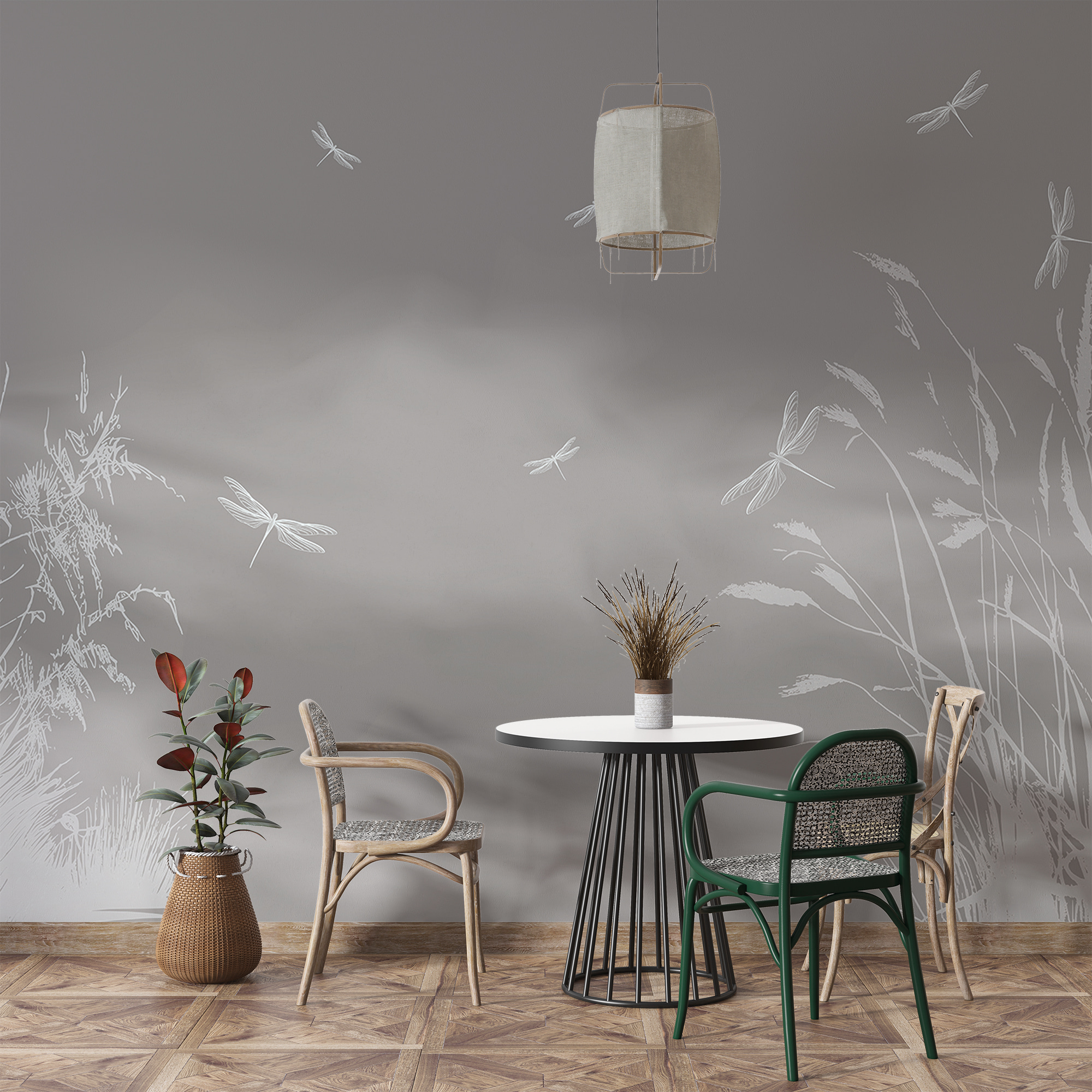 Stel je eens voor: je loopt je woonkamer binnen en aan de muur hangt een betoverende muurschildering van libellen, als in een droom. Met de muurschildering “Witte libelle met vleugels” voeg je niet alleen kunst toe, maar haal je ook een vleugje elegantie uit de natuur in huis. De delicate, bijna fluisterend witte contouren fladderen over een zachte grijze achtergrond en roepen gevoelens van vrede en rust op, zoals een rustige middag bij een vijver. Die libellen lijken bijna klaar om van de muur te vliegen! Ideaal voor natuurliefhebbers of iedereen die op zoek is naar een serene sfeer in de kamer. Het is alsof je een mini ontsnapping hebt naar een kalme weide zonder ooit je huis te verlaten. Perfecte gespreksstarter en een vredige blikvanger – alles in één mooie muurschildering.