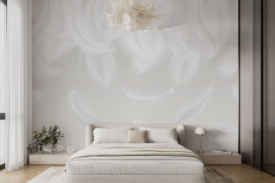 “Fotobehang White Feathers Falling Down” is als een zacht briesje in je leefruimte. Stel je voor dat je op een luie zondagochtend aan je koffie zit te nippen terwijl deze delicate veren langs je muur naar beneden drijven. Het is alsof je je kamer een zachte, luchtige knuffel geeft. Deze muurschildering voegt een vleugje elegantie toe en verandert een gewone muur in een kunstzinnige ontsnapping. Perfect voor wie graag een beetje in de wolken zweeft. En hé, misschien inspireert het zelfs wel tot een paar dromerige gedachten of grillige gesprekken. Want wie heeft er af en toe geen behoefte aan een beetje dagdromen?
