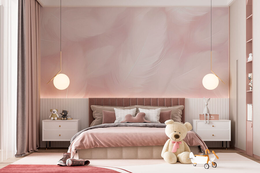 Stel je eens voor dat je een kamer binnenstapt die aanvoelt als een zachte knuffel, gewoon in je eigen ruimte. Deze charmante muurschildering “Feather Dreams in Soft Pink Hues” brengt die sfeer moeiteloos over. Het zachte roze en de delicate veren zweven sierlijk over de muur, als een dagdroom waaruit je nooit meer wakker wilt worden. Het is niet zomaar een decor; het is een stemming. Perfect voor die momenten waarop je even tot rust moet komen en je jezelf zwevend op wolken waant. Het is als je eigen persoonlijke stukje sereniteit, met een vleugje eigenzinnigheid. Wie wist dat muren zo gezellig konden aanvoelen?