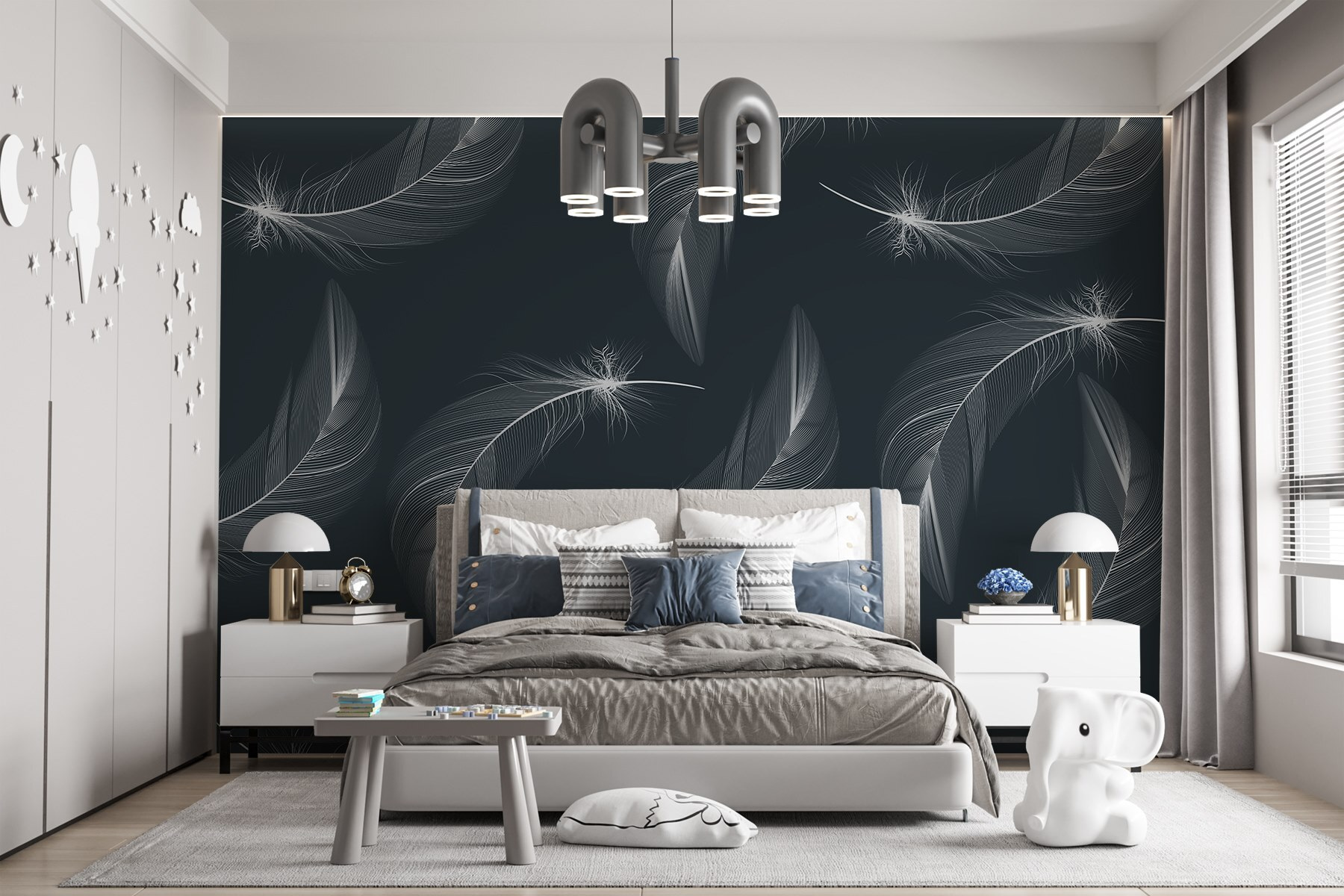 Transform your space with this serene “Wall Murals Pattern of White Feathers.” Imagine stepping into your room and feeling instantly calmed by the soft, subtle elegance of these feather motifs floating gracefully across a rich, dark background. It’s like having a whisper of nature indoors, inviting peaceful vibes that make you want to curl up with a good book or sip tea while daydreaming. Perfect for bedrooms or cozy nooks, this mural brings a touch of whimsical charm. Plus, it’s a lovely conversation starter—after all, who doesn’t love a bit of feather fun? Add a layer of comfort to your decor, and let those gentle patterns carry you away!