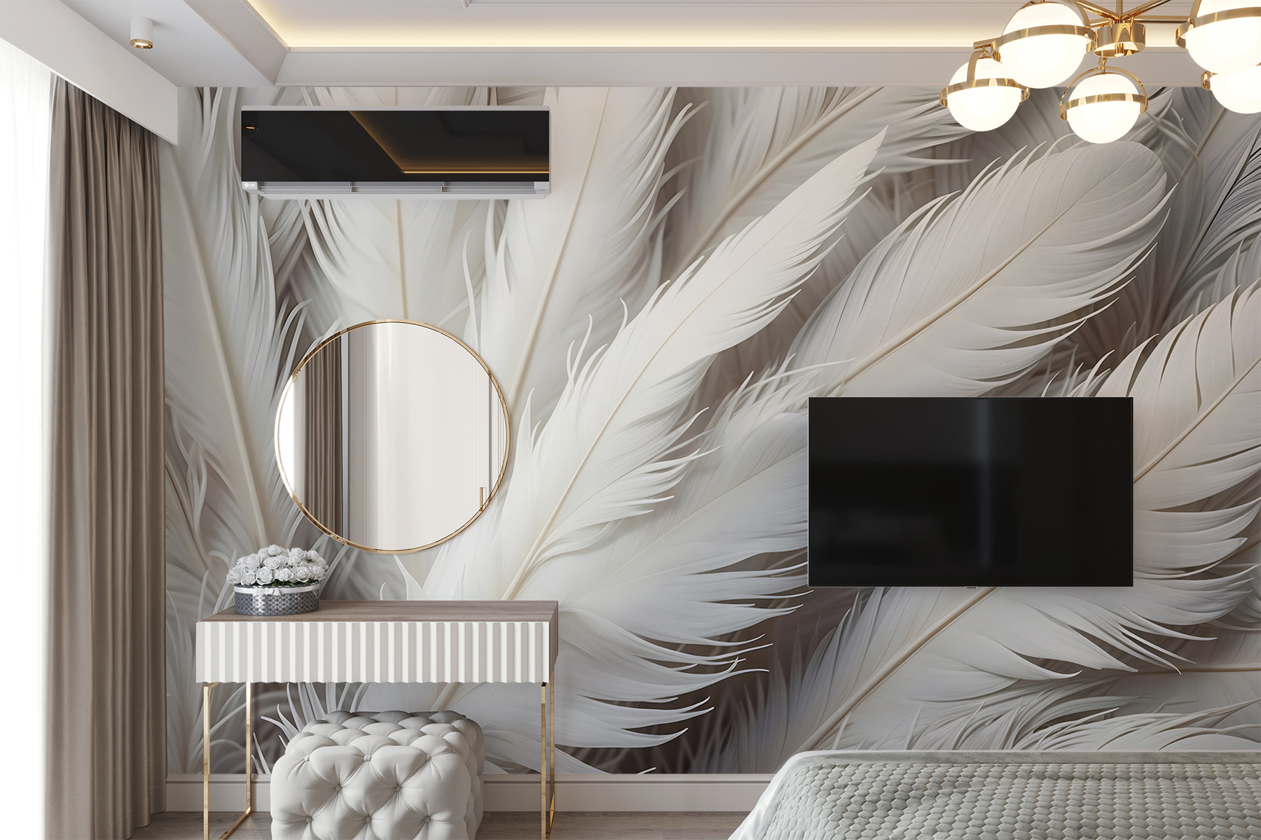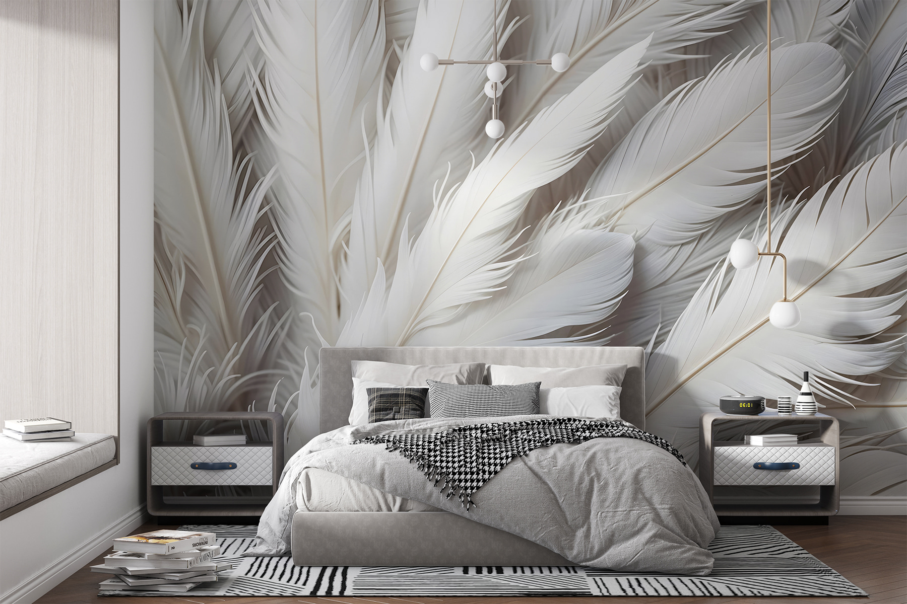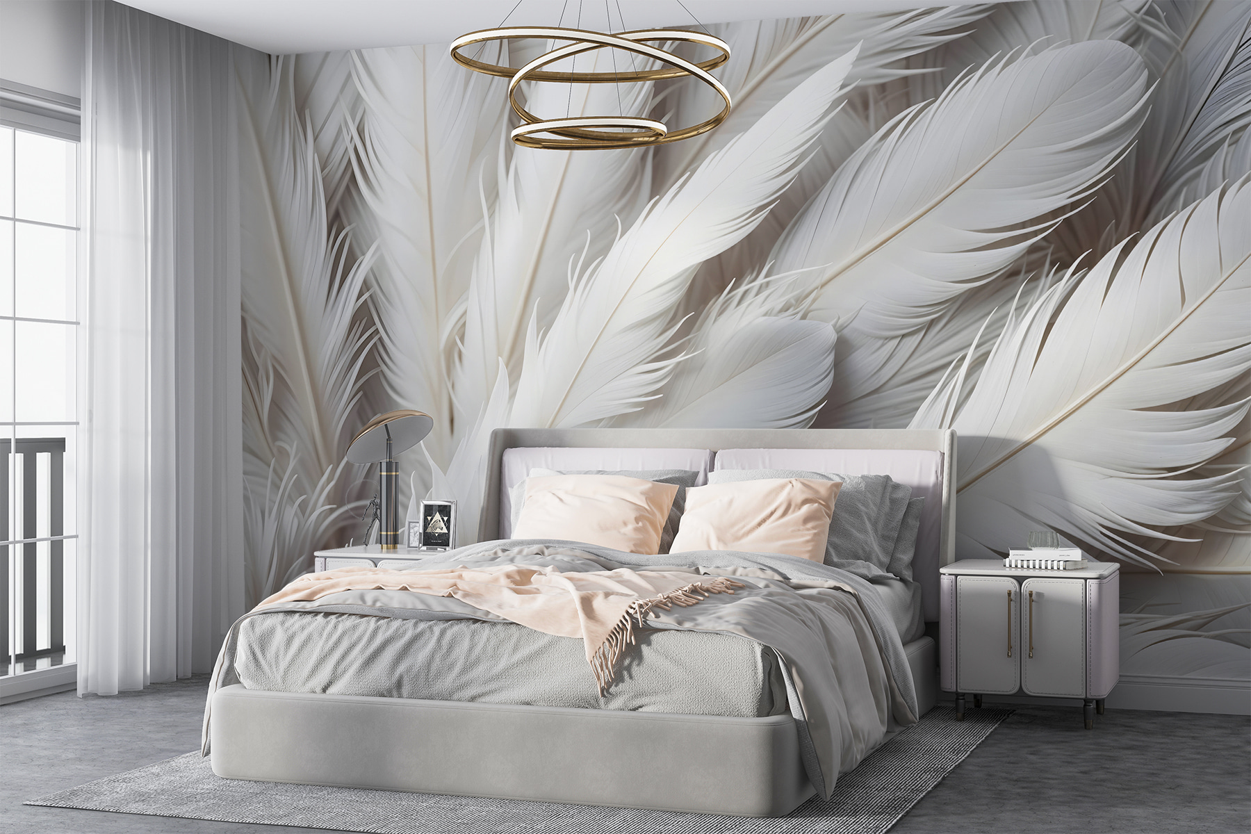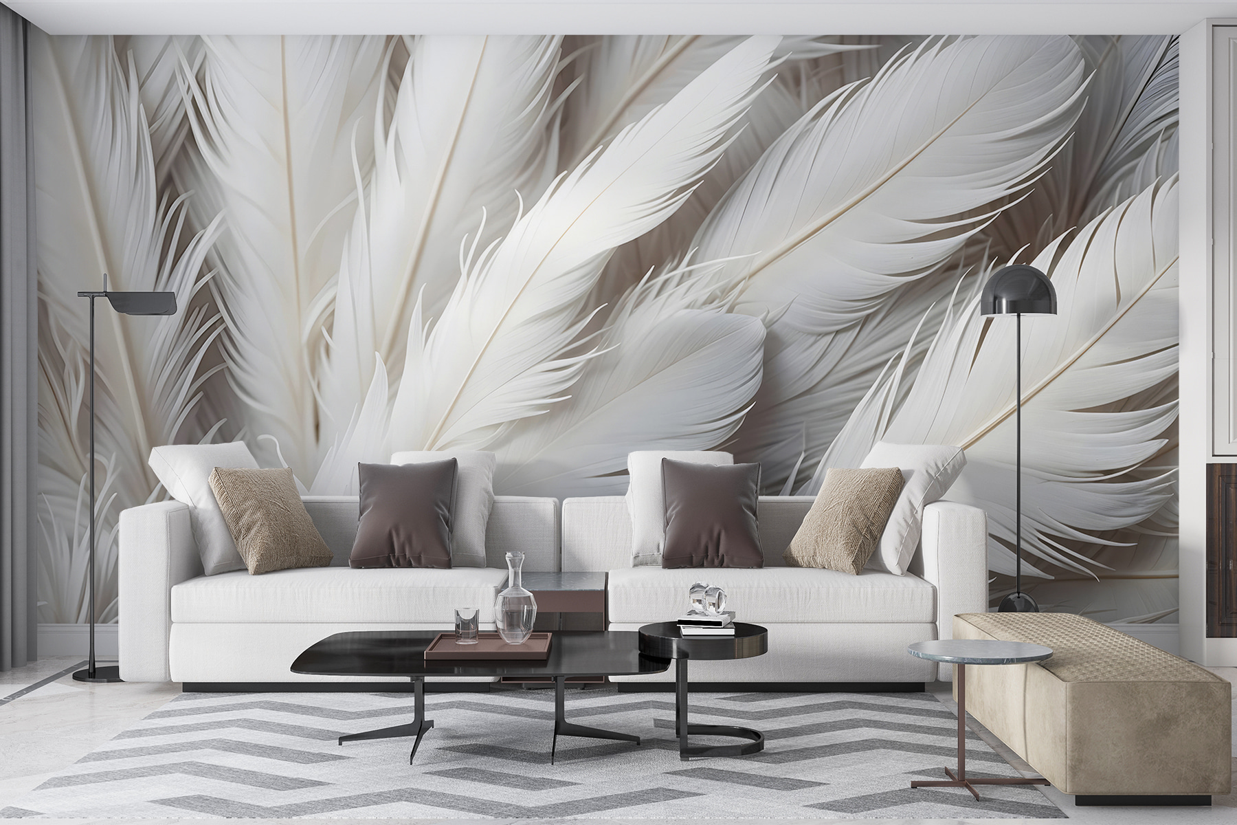 Stel je eens voor dat je een zwerm delicate veren in je woonkamer hebt – een elegant gefluister. Deze muurschildering “Groep witte veren” is perfect voor die momenten waarop je wilt dat je ruimte aanvoelt als een sereen nestje. Het is niet zomaar kunst aan de muur; het is een dagdroom waar je elke ochtend langs kunt lopen. Het zachte wit en de zachte rondingen brengen een gevoel van rust en eigenzinnigheid in je dag. Stel je voor: loungend op een knusse stoel onder het schijnsel van avondverlichting voelt de kamer als een heiligdom. Vederlicht en toch onvergetelijk.