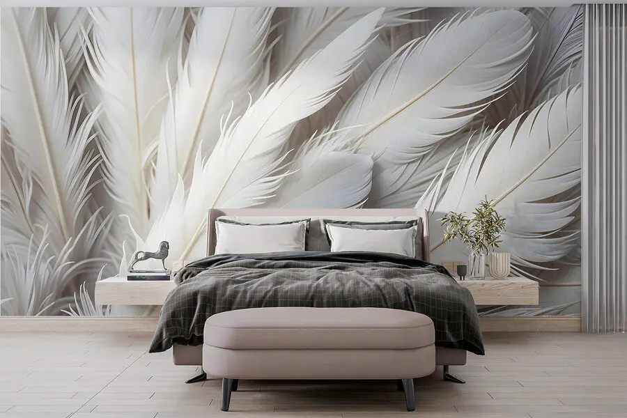 Stel je eens voor dat je een zwerm delicate veren in je woonkamer hebt – een elegant gefluister. Deze muurschildering “Groep witte veren” is perfect voor die momenten waarop je wilt dat je ruimte aanvoelt als een sereen nestje. Het is niet zomaar kunst aan de muur; het is een dagdroom waar je elke ochtend langs kunt lopen. Het zachte wit en de zachte rondingen brengen een gevoel van rust en eigenzinnigheid in je dag. Stel je voor: loungend op een knusse stoel onder het schijnsel van avondverlichting voelt de kamer als een heiligdom. Vederlicht en toch onvergetelijk.