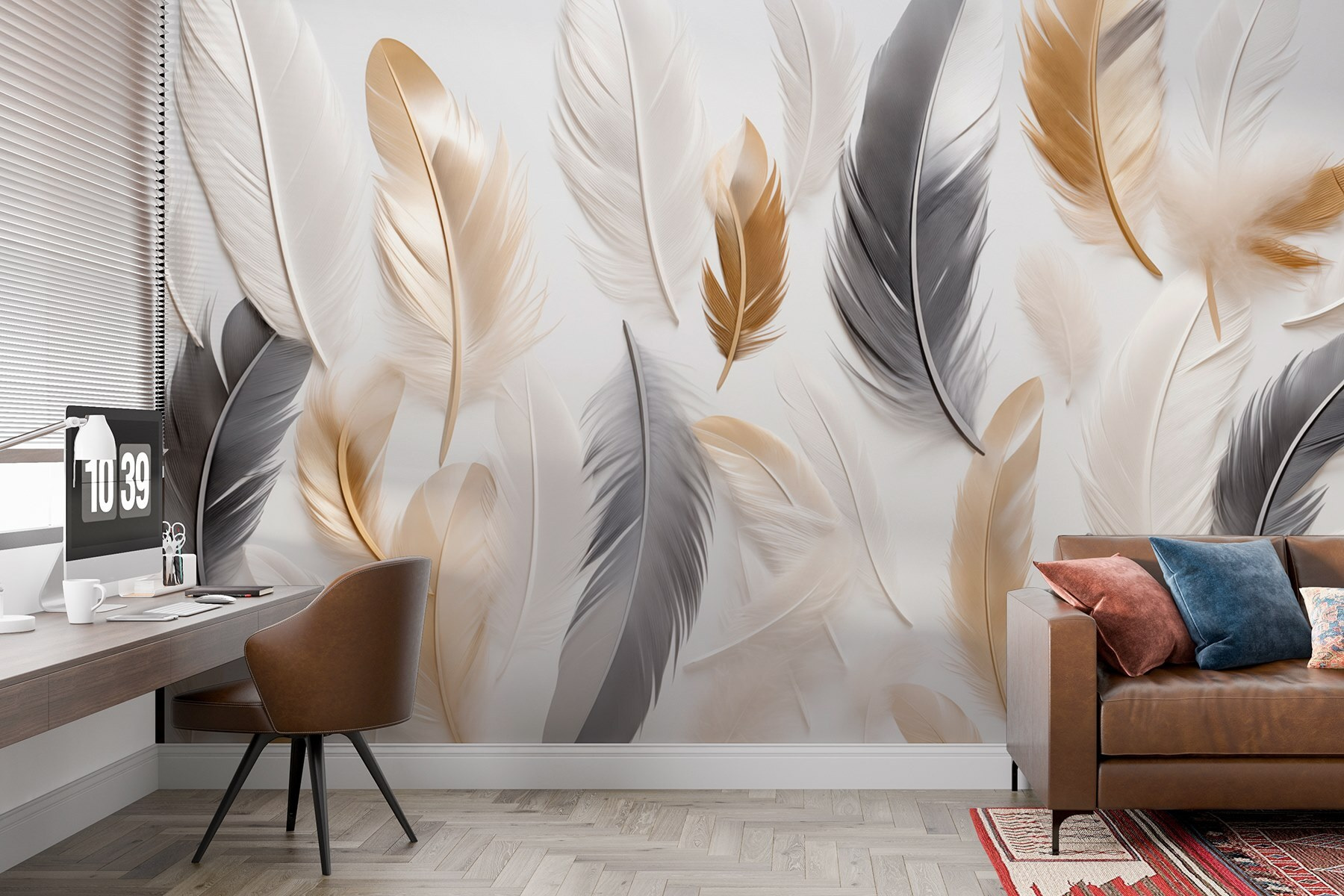 Transformeer elke kamer met deze prachtige muurschildering met een prachtig arrangement van veren op een frisse witte achtergrond. Het is alsof je een luchtige, luchtige sfeer in huis haalt. Stel je voor dat je elke ochtend wakker wordt met dit elegante ontwerp dat je doet denken aan rustige dagen in de buitenlucht. De mix van veertinten geeft een gevoel van diepte – elk lijkt zijn eigen persoonlijkheid te hebben, wachtend tot iemand het opmerkt. Perfect voor een gezellige leeshoek of een stijlvolle entree, het is het soort kunstwerk dat gasten twee keer zal laten kijken. Laat je muren een verhaal vertellen en nodig warmte en een vleugje natuur uit.