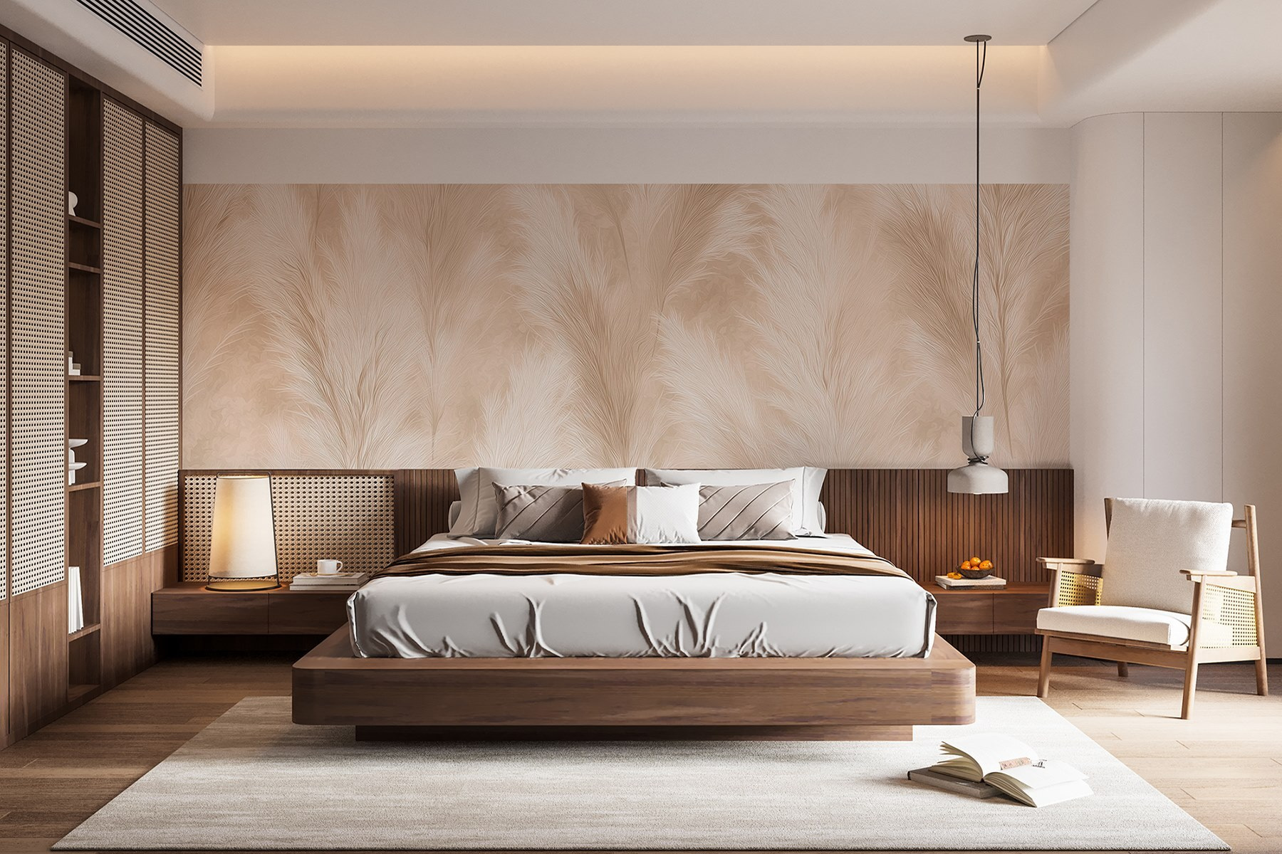 Stel je voor dat je lekker wegkruipt met een goed boek, omringd door deze zachte, natuurlijke tinten die je geest onmiddellijk kalmeren. Het is het soort inrichting dat gesprekken op gang brengt – gasten zullen waarschijnlijk de muren aanraken en zich verliezen in de rustige sfeer. Of het nu je woonkamer is of een gezellig hoekje, deze muurschildering kan het gewone veranderen in iets buitengewoons. Bovendien gaat hij prachtig samen met groen. Denk eens aan die mix van texturen! Laat deze muurschildering een canvas zijn voor die kleine momenten van vreugde.