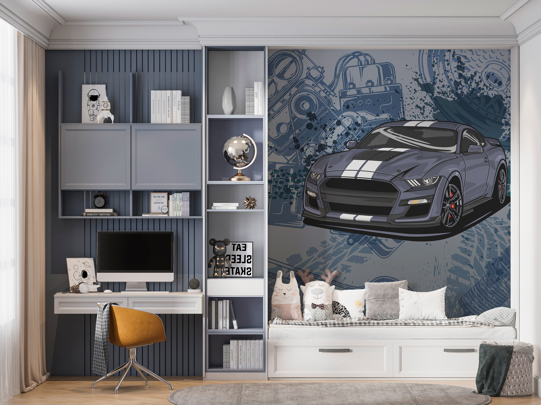 Wek de energie in elke kamer op met deze levendige muurschildering met een gestroomlijnde auto, een moersleutel en spelende wielen. Het is net alsof je een klein auto-avontuur op je muur hebt. Kun je geloven hoe een eenvoudige achtergrond de sfeer kan veranderen? Stel je voor dat je in een garage-thema rondhangt of in een kinderkamer vol dromen over racen. Deze muurschildering geeft niet alleen persoonlijkheid maar ook vreugde, zoals de geur van vers gemaaid gras of die eerste slok koffie op een frisse ochtend. Voor autoliefhebbers en dagdromers is dit niet zomaar decor; het is een portaal naar een wereld van snelheid en creativiteit.