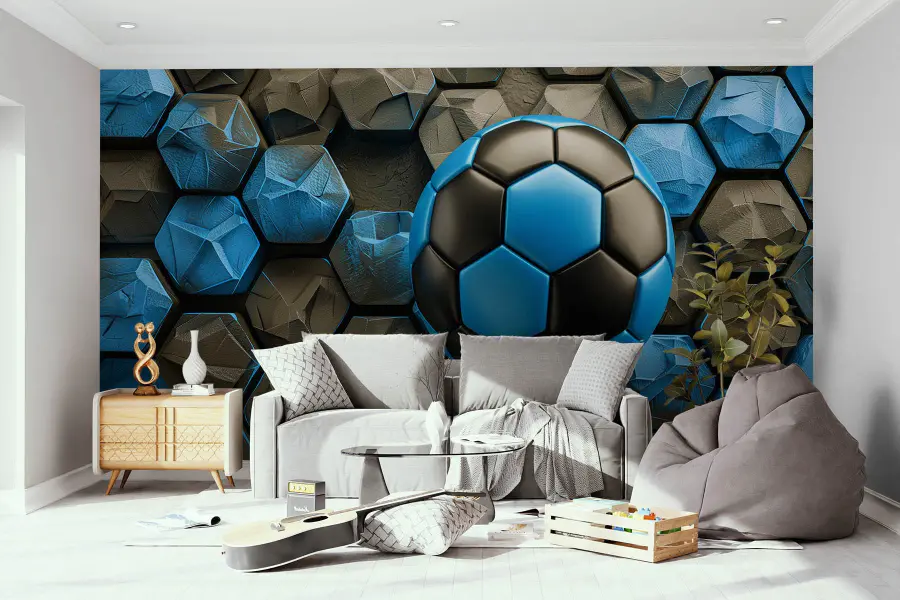 Verander elke ruimte in een bruisend centrum van opwinding met de “Fotobehang Blue and Black Football Ball”. Stel je voor dat je een kamer binnenloopt waar een majestueuze voetbal lijkt te zweven tussen een werveling van koel blauw en rijk zwart – over een gespreksstarter gesproken! Perfect voor speelkamers, kinderspeelruimtes of zelfs dat hippe café om de hoek.
