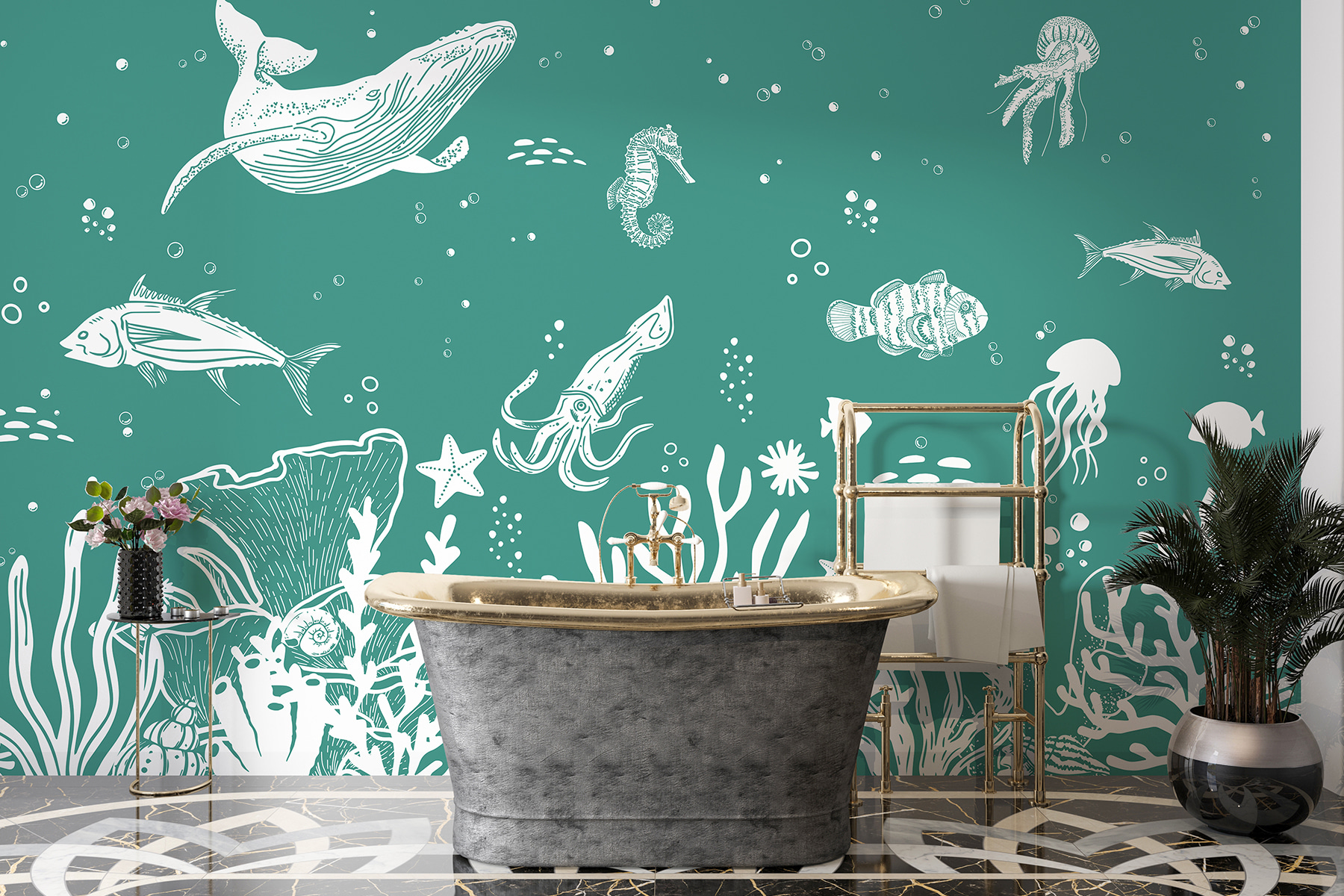 Hé daar, oceaanliefhebbers! Deze muurschildering “Tekening van een inktvis” is een heerlijk onderwateravontuur op je muren. Stel je voor dat je je woonkamer binnenloopt en het gevoel hebt dat je in de diepzee bent gestapt – met walvis, zeepaardje en al! Het is alsof je thuis een mini-oceanarium hebt. Perfect voor mensen die dromen van de zee of gewoon een rustige, natuurlijke ruimte willen. En wie houdt er niet van inktvissen? Het zijn de onbezongen helden van de zee! Grillig, leuk en precies het juiste vleugje natuurschoon – een vleugje zeekust zonder natte voeten te krijgen. Duik erin en maak golven in je interieur! 🌊