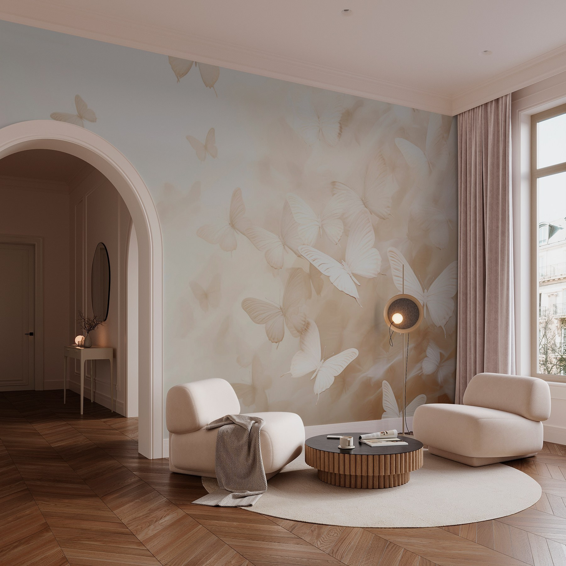 Stel je een knus leeshoekje voor of een rustige slaapkamer, waar deze lichte, vloeiende ontwerpen een rustgevend tintje geven. Elke blik op de vlinders roept een gevoel van vrijheid en verwondering op, alsof ze elk moment kunnen gaan vliegen. Vrienden zullen binnenwandelen, even pauzeren en zuchten – het is een zoete kleine ontsnapping die op zich laat wachten. Wat een heerlijke manier om elke muur levendig te maken!