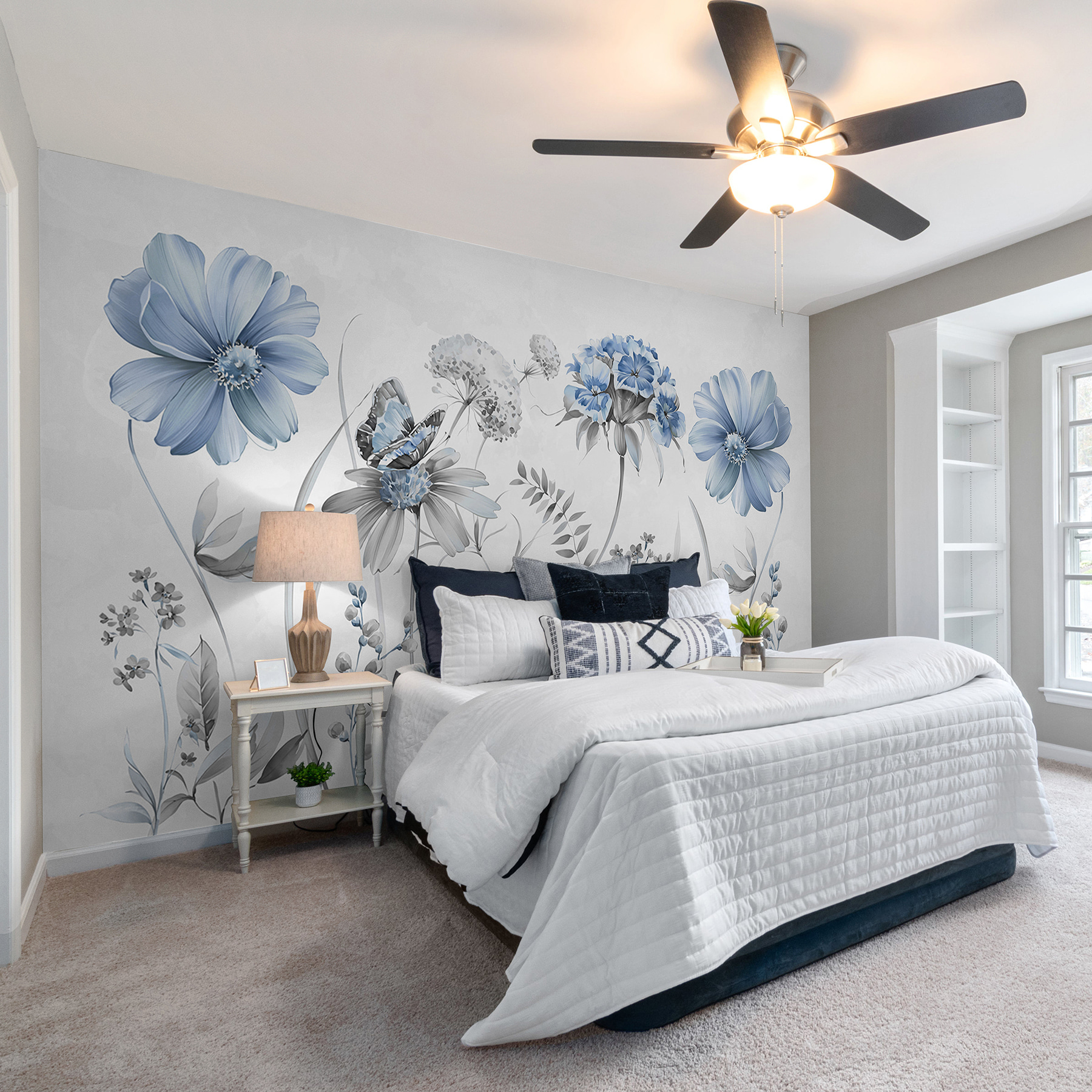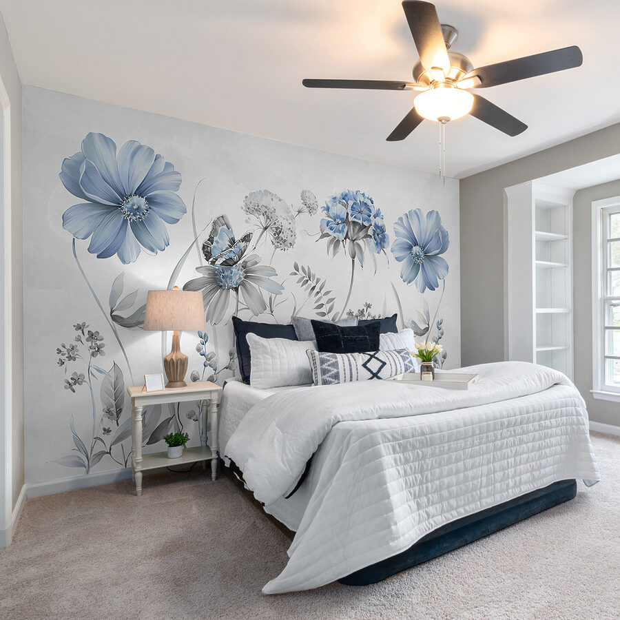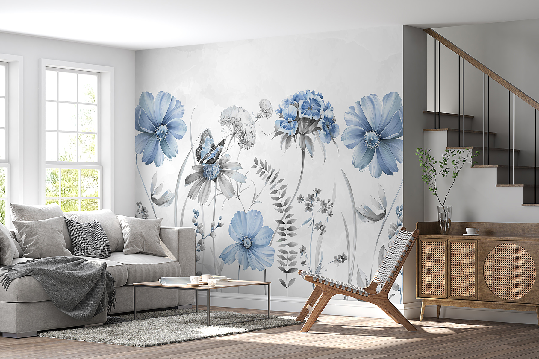 Goed, laten we het hebben over deze muurschildering-“Fotobehang w07905v2,” zoals hij officieel heet. Het is een traktatie voor vlinderliefhebbers en iedereen die houdt van decoraties met een natuurthema. Stel je voor: je drinkt je ochtendkoffie en deze delicate blauwe bloemen en vlinders vormen je achtergrond. Hun zachte tinten en ingewikkelde details hebben een bijna magische uitstraling… alsof je een serene tuin bent binnengestapt.