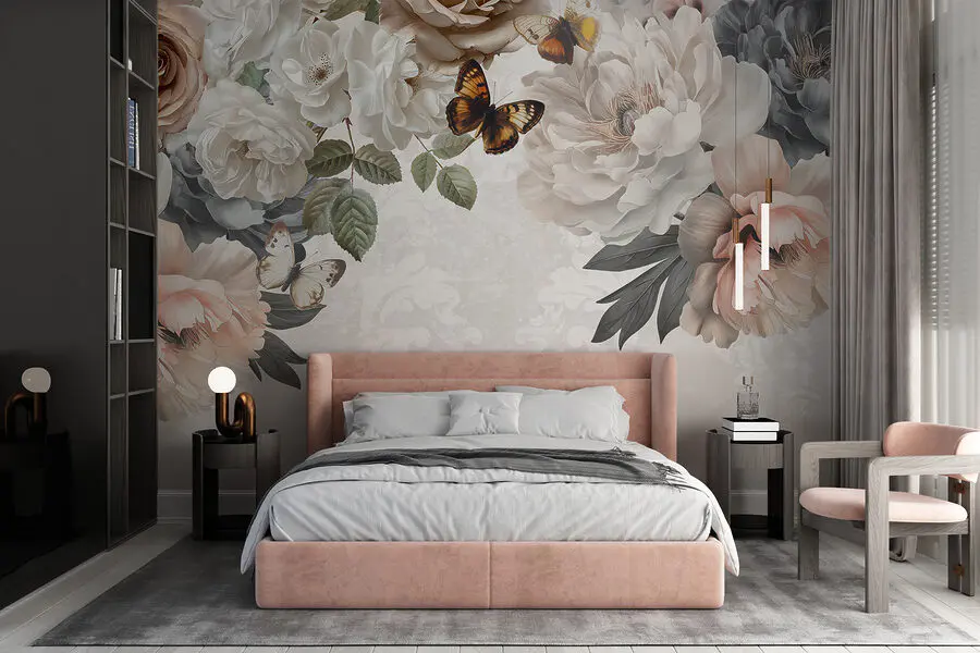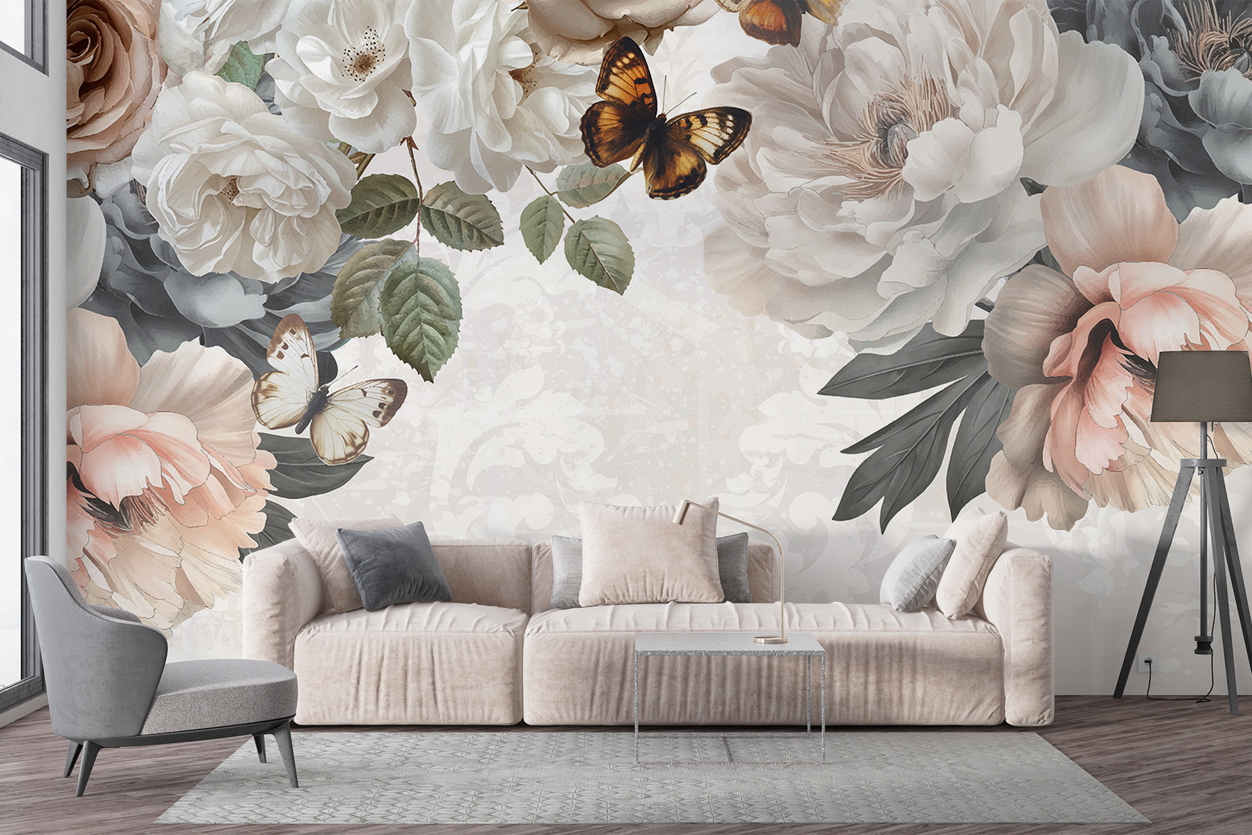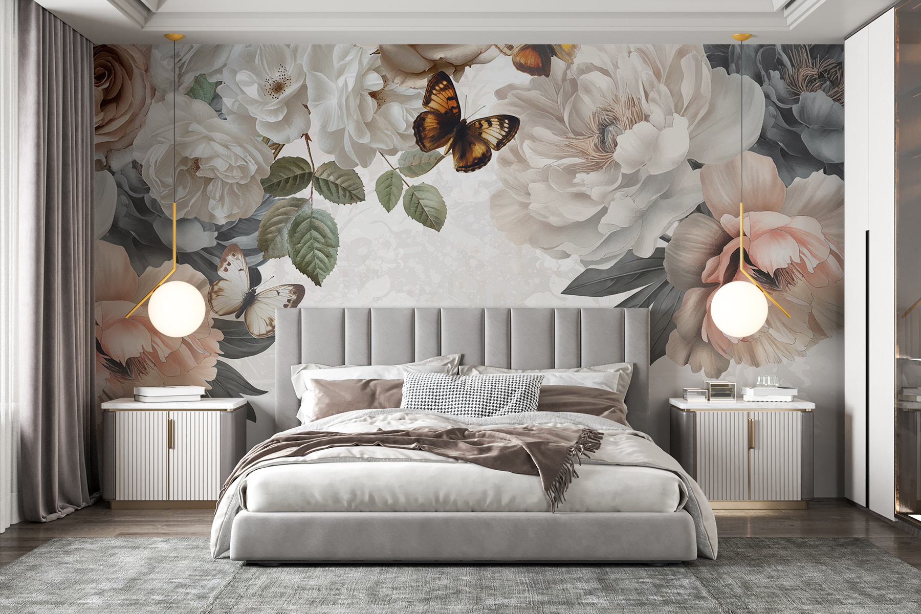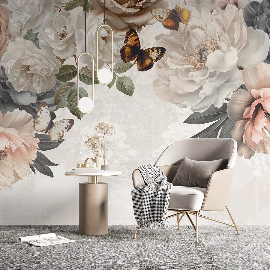 Stel je voor dat je een kamer binnenloopt en het gevoel hebt dat je net een dromerige tuin bent binnengestapt met een licht briesje op je gezicht. Deze muurschildering “Groep bloemen met vlinders” is niet zomaar decoratie, het is een ontsnapping. Rozen en pioenrozen dansen in het rond, terwijl fladderende vlinders een vleugje eigenzinnigheid toevoegen. Perfect voor iedereen die vindt dat muren meer moeten doen dan alleen het dak omhoog houden – ze moeten ook verhalen vertellen. Maakt het alledaagse leven een beetje minder gewoon en een stuk mooier. Ideaal voor ruimtes die een vleugje charme van de natuur willen!