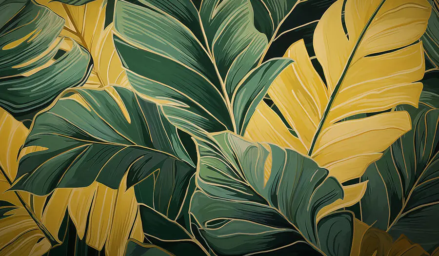 Haal het buitenleven naar binnen met deze prachtige muurschildering, “Levendig gebladerte in geel en groen”. Stel je voor dat je elke dag wakker wordt met een tropische oase in je woonkamer. Die felle gele en weelderige groene bladeren knallen alsof ze net door de zon zijn gekust. Het is net een mini-vakantie aan je muur! Vrienden zullen zich afvragen of je een geheime tuin in de tuin hebt.
