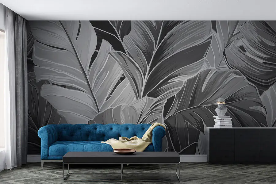 Tover je ruimte om in een ontspannen tropische oase met de muurschildering “Weelderige bladeren in monochrome tinten”. Het is alsof je een beetje jungle in huis haalt, maar dan zonder de vervelende muggen. Stel je voor: een serene achtergrond van elegante bladeren die je muren bedekken en diepte en karakter toevoegen. De monochrome tinten bieden een stijlvolle maar subtiele sfeer, perfect als aanvulling op heldere meubels of om een rustig toevluchtsoord te creëren. Of je nu ‘s ochtends aan je koffie nipt of je favoriete programma’s kijkt, deze muurschildering hult je in een knusse omhelzing van de natuur. Het is kunst die leven blaast in elke kamer – durf een beetje te dromen!