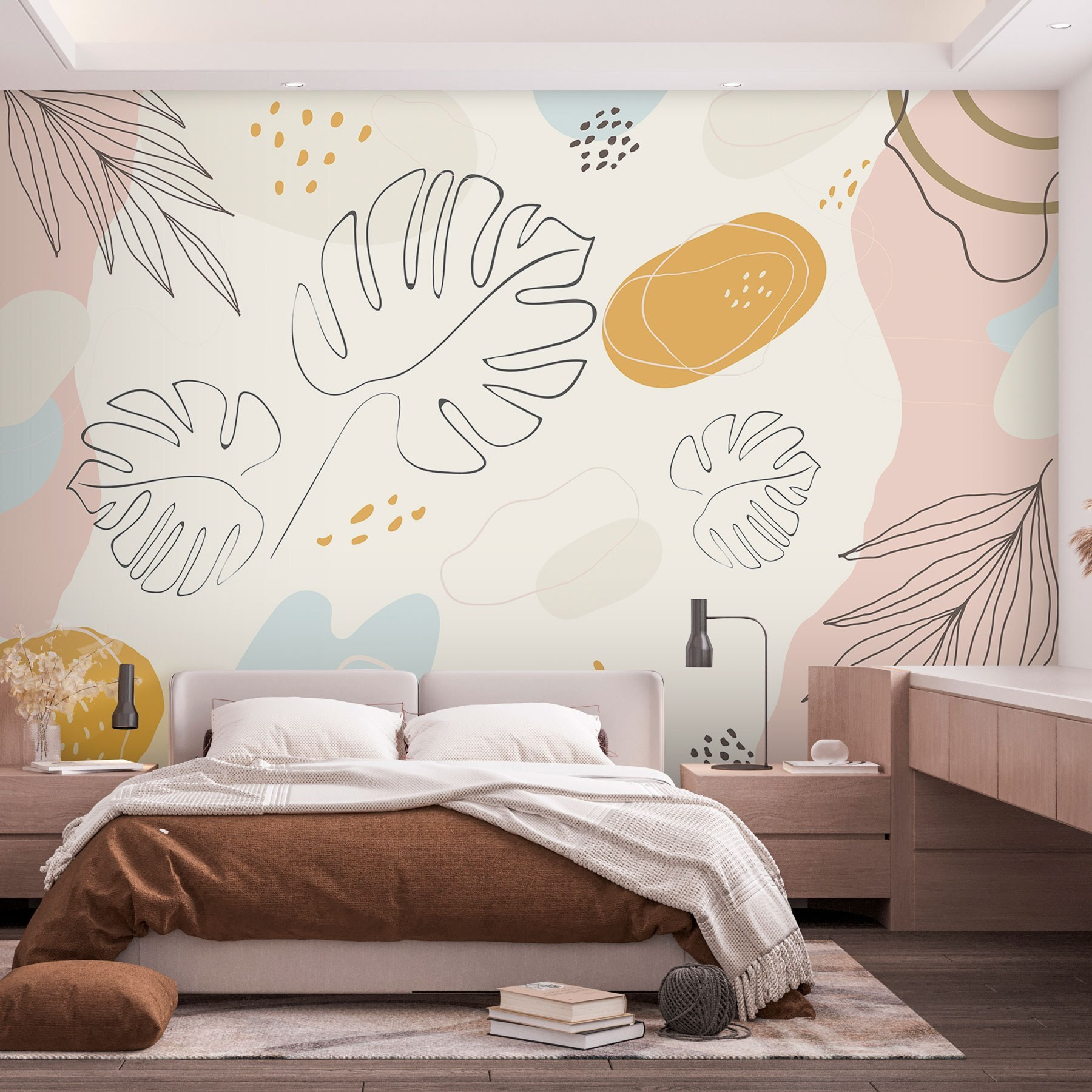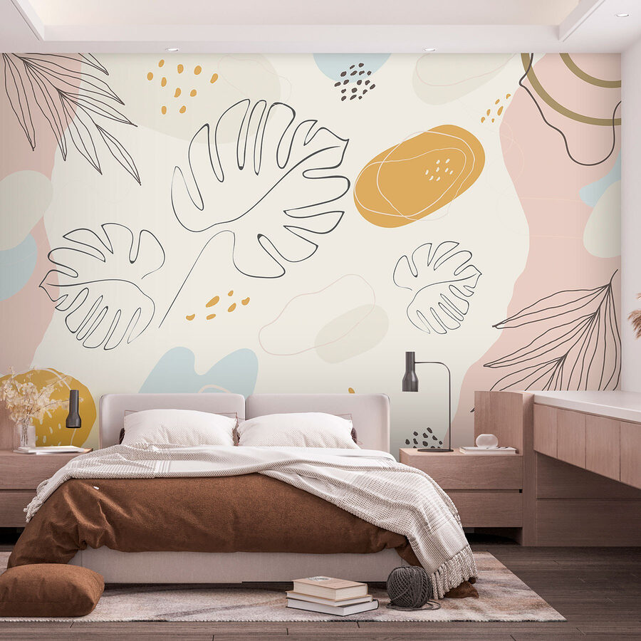 Transformeer je kamer met de muurschildering “Artful Leaves on a Pastel Background”. Het is alsof je een zacht briesje uit de tropen naar je woonkamer brengt. De vrolijke, zachte tinten roze, geel en blauw creëren een serene sfeer – perfect om thee te drinken en te dagdromen. Stel je eens voor hoe knus dat zou voelen tijdens een regenachtige middag, alleen jij en je favoriete boek. Bovendien nodigen de speelse bladmotieven uit tot een beetje natuur binnenshuis zonder de gieters en verzorgingsroutines. Geweldig voor elke kamer; het straalt charme en creativiteit uit. Je muren zullen er geweldig uitzien en geloof me, gasten zullen misschien een beetje jaloers worden!