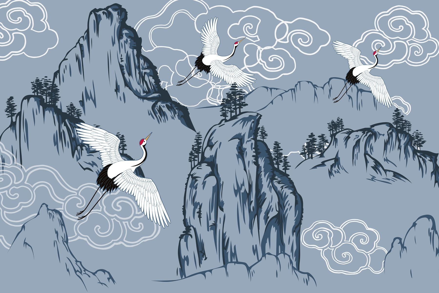 Verander je ruimte in een serene ontsnapping met deze prachtige muurschildering met sierlijke vogels die over majestueuze bergen zweven. Het is alsof je een beetje natuur in huis haalt zonder alle pollen. Stel je voor dat je ‘s ochtends aan je koffie nipt terwijl je je op een vredige bergtop waant – zonder de wandelschoenen. De zachte kleuren en ingewikkelde details nodigen uit tot rust, perfect voor een gezellige leeshoek of een rustige slaapkamer. Bovendien is het een geweldige gespreksstarter! Gasten zullen nieuwsgierig zijn naar die elegante kraanvogels en jij hebt het perfecte verhaal al klaar. Het is meer dan alleen decor; het is een stukje zen voor aan je muur. Verfris je kamer en laat je muren verhalen van het buitenleven fluisteren!