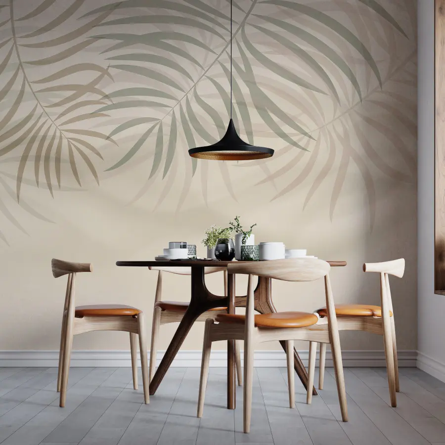 Tover elke kamer om in een sereen toevluchtsoord met deze prachtige muurschildering, “Zachte bladeren tegen een zachte achtergrond”. Stel je voor dat je een tropisch paradijs binnenstapt, al is het maar je woonkamer. Die zachte, gedempte bladeren roepen een gevoel van rust op, als een zacht gefluister van de natuur. Perfect voor het creëren van een knus hoekje of een zen werkplek, het voelt fris en toch tijdloos. Het is als een zachte bries – verfrissend, opbeurend. Vrienden zullen binnenkomen en glimlachen, en misschien zelfs vragen of je op vakantie bent geweest. Wie heeft er palmbomen nodig als je deze dromerige ontsnapping thuis kunt hebben?