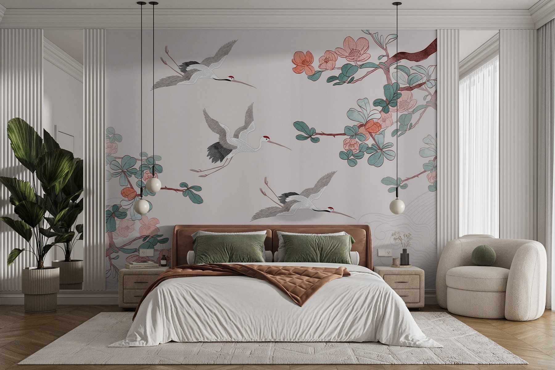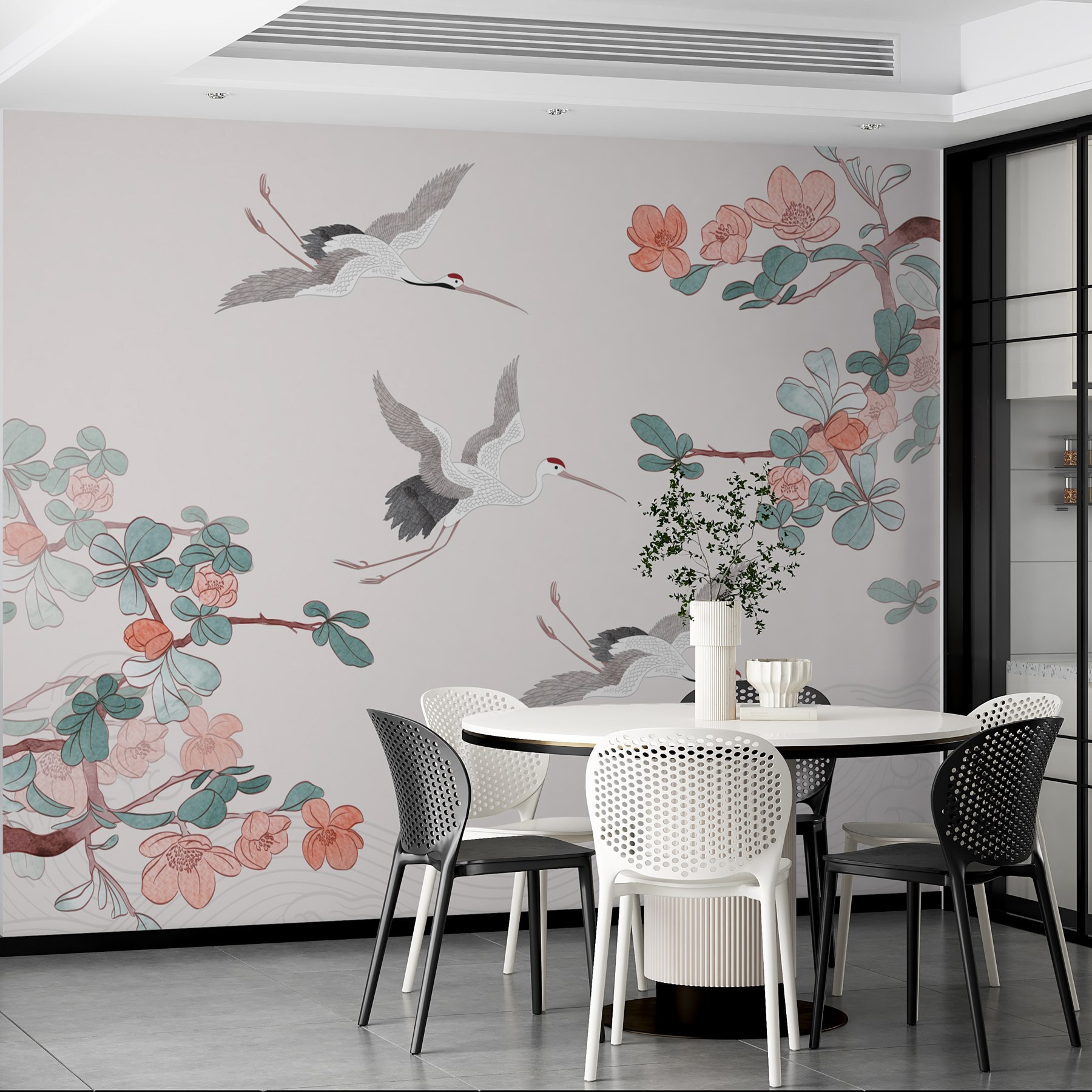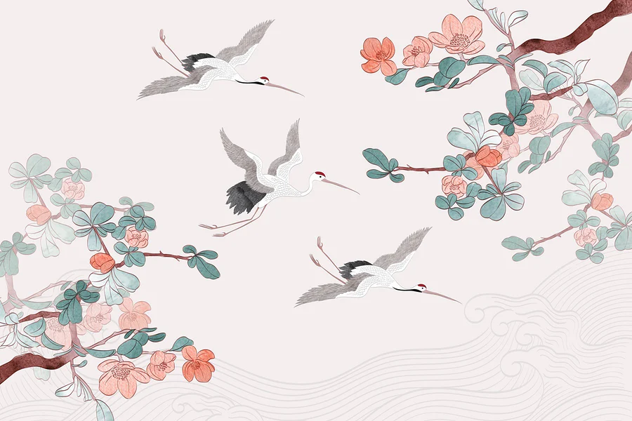 Transform your space with this stunning mural featuring a graceful group of birds soaring through the air. It’s like inviting a breath of fresh air into your room—no need for a window when you’ve got this beauty on your wall. The delicate blossoms and the serene colors create a vibe that’s both calming and energizing. Imagine sipping your morning coffee while gazing at these elegant creatures—seriously, it’s an instant mood lifter! Plus, who doesn’t love a little nature indoors? It’s chic, it’s stylish, and it’s sure to spark a few compliments when friends drop by. Perfect for a living room or a cozy nook, this mural is here to add a sprinkle of wonder to your day!