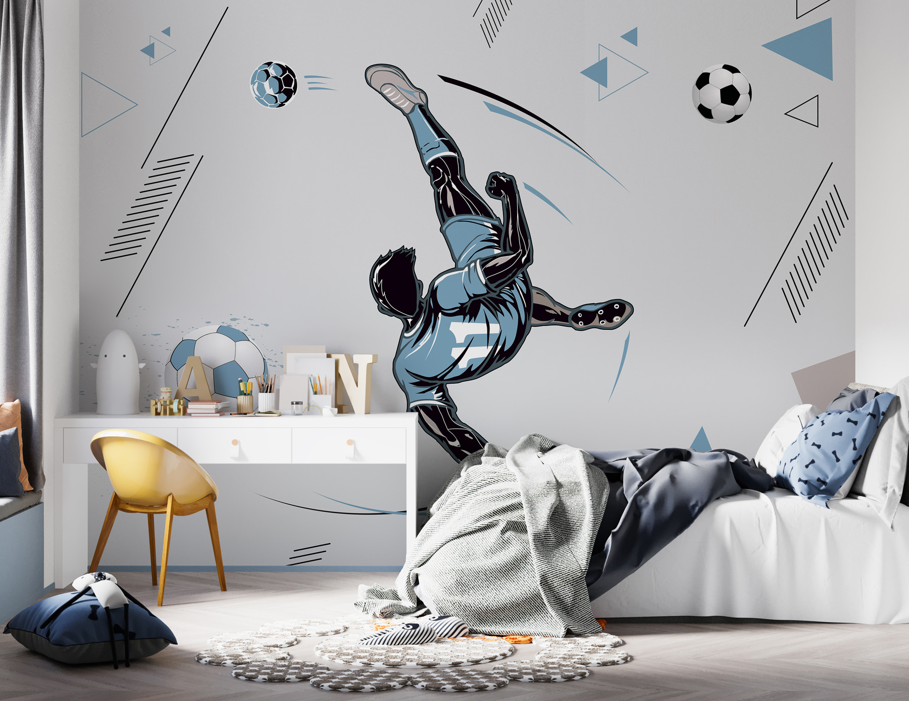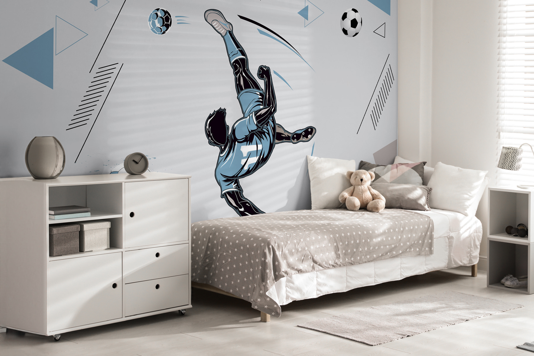 Het is een fantastische keuze voor een speelkamer, een tienerkamer of zelfs een woonkamer waar je de boel levendig wilt houden. Bovendien voegt de mix van moderne geometrische vormen op de achtergrond een cool, artistiek tintje toe. Vrienden zullen binnenkomen en die golf van opwinding voelen, alsof ze het publiek horen brullen bij een grote wedstrijd.