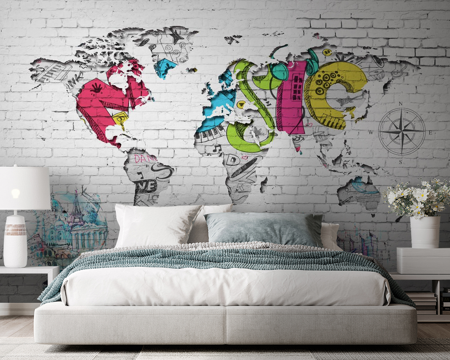 Verander je ruimte in een avontuur met deze eigenzinnige muurschildering met gedurfde, kleurrijke ontwerpen op een klassieke bakstenen achtergrond. Stel je voor dat je een kamer binnenloopt die voelt alsof hij barst van de verhalen uit de hele wereld – elke kleurspetter vertelt zijn eigen verhaal. Het is niet alleen decor; het is een uitnodiging om te dromen. Perfect voor een jonge vrouw die van reizen houdt, of iedereen die van een vleugje creativiteit in haar leven houdt. Combineer het met wat potplanten en je hebt een knus hoekje dat vreugde en misschien zelfs een beetje reislust opwekt. Het draait allemaal om het maken van herinneringen – net als die op deze muurschildering, klaar om elke dag te inspireren!