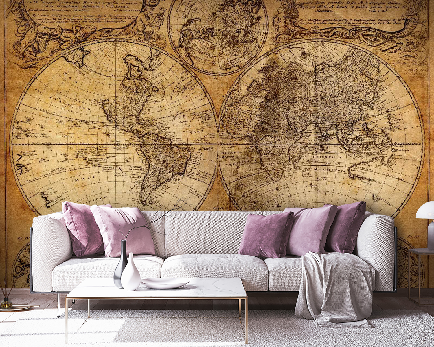 Droom je van een wereldse sfeer voor je kamer? Kijk dan eens naar deze Antieke Wereldkaart muurschildering. Het is alsof je een oude studeerkamer binnenstapt, vol verhalen en reizen. Stel je voor dat je koffie drinkt en de routes volgt die ontdekkingsreizigers ooit namen. Het is perfect om elke kamer die vintage charme te geven – plus, het is een geweldige conversatiestarter. De sepiatinten en ingewikkelde details? Pure magie. Het voelt alsof je op een verborgen schat of oude geheimen stuit als je ernaar kijkt. Hang hem op en verander je kamer in een portaal naar het verleden!