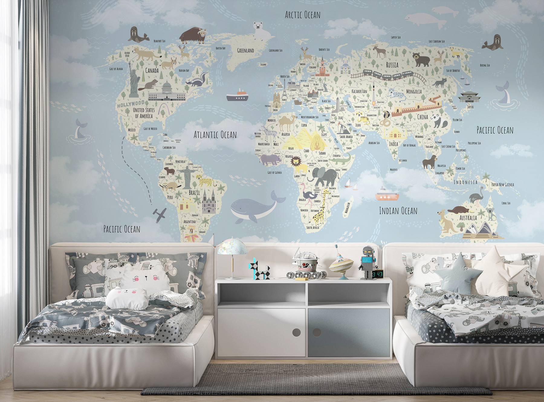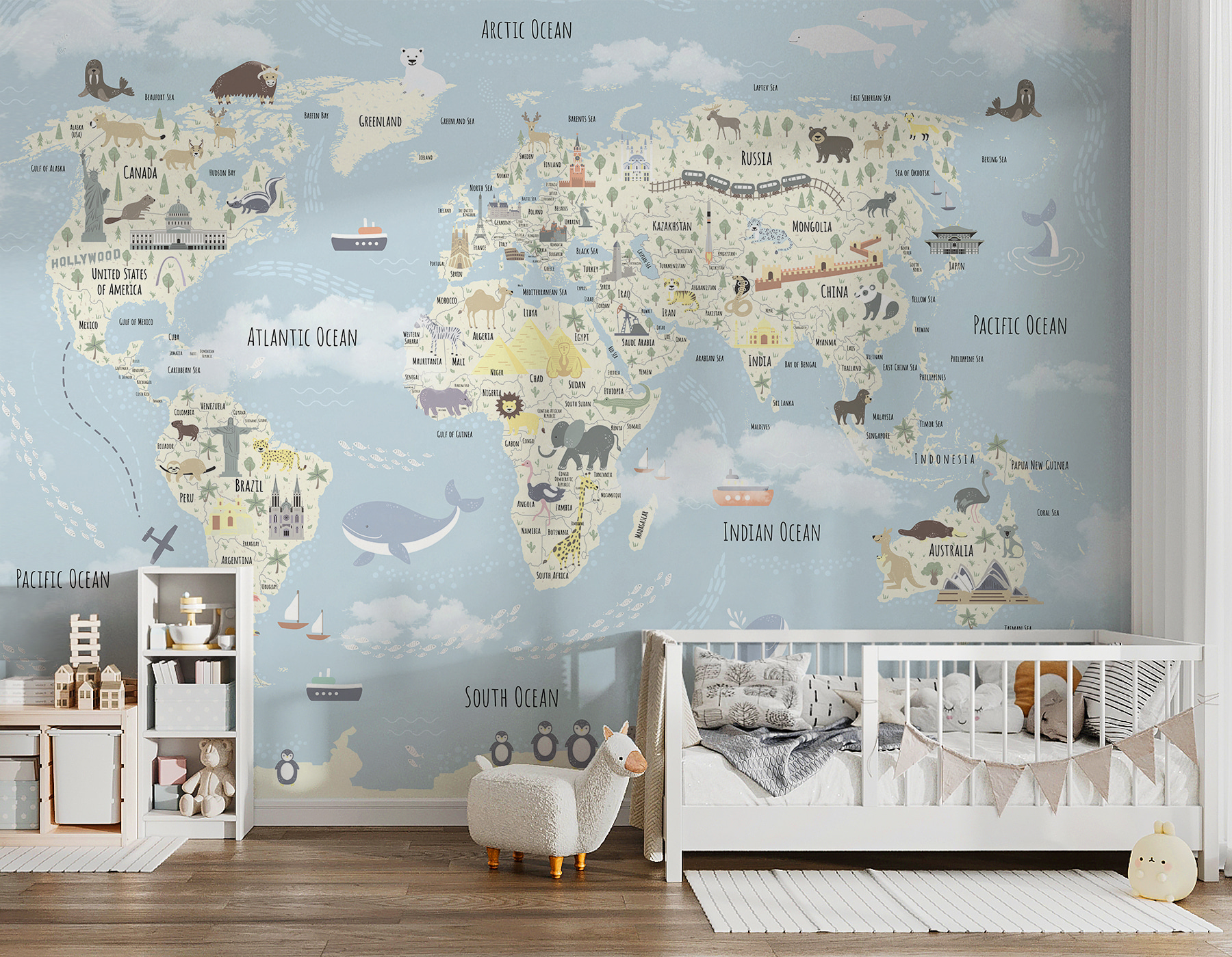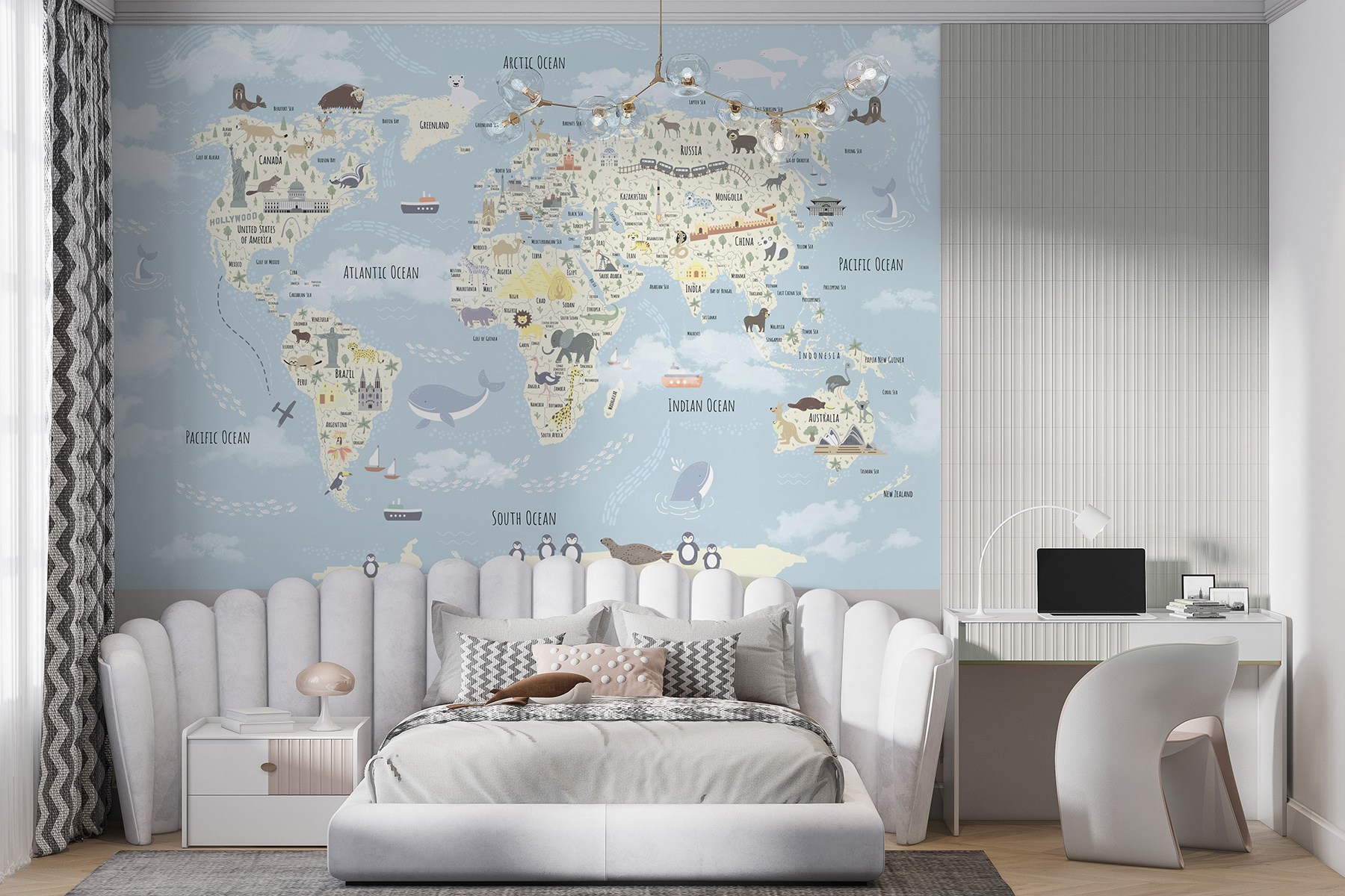 Stel je deze wereldkaart eens voor in de kamer van je kind. Het is alsof je ze het universum geeft om te ontdekken zonder dat ze het huis hoeven te verlaten. Telkens als ze ernaar kijken, worden ze meegenomen van Alaska naar Australië. Het is schattig en gedetailleerd en zit vol met dieren, herkenningspunten en leuke dingen die de nieuwsgierigheid aanwakkeren. De zachte pasteltinten zijn zacht voor de ogen en geven het een speelse maar rustgevende sfeer. Perfect voor kleintjes, of ze nu aardrijkskundefanaten zijn of gewoon dromers. Kijk hoe ze oplichten als ze een nieuw dier of land zien, de wereld rondreizend vanuit hun knusse plekje! Ook geweldig om verhalen te vertellen – stel je de avonturen voor die ze zullen bedenken. Bovendien is het mooi genoeg om zelf een kunstwerk te zijn! Hoe leuk is dat?